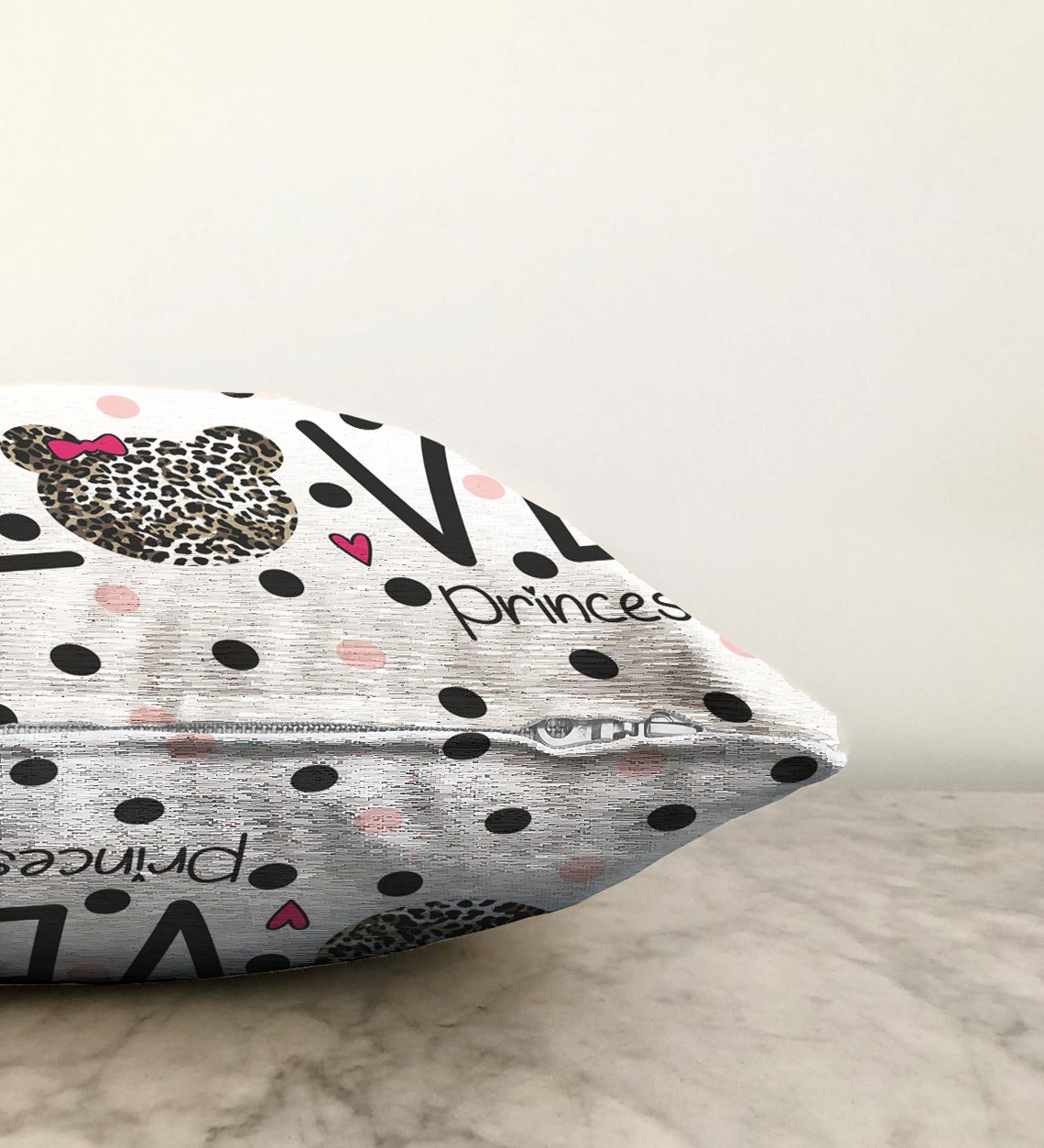 Love Princess Motifli Dijital Baskılı Dekoratif Raşel Kırlent Kılıfı