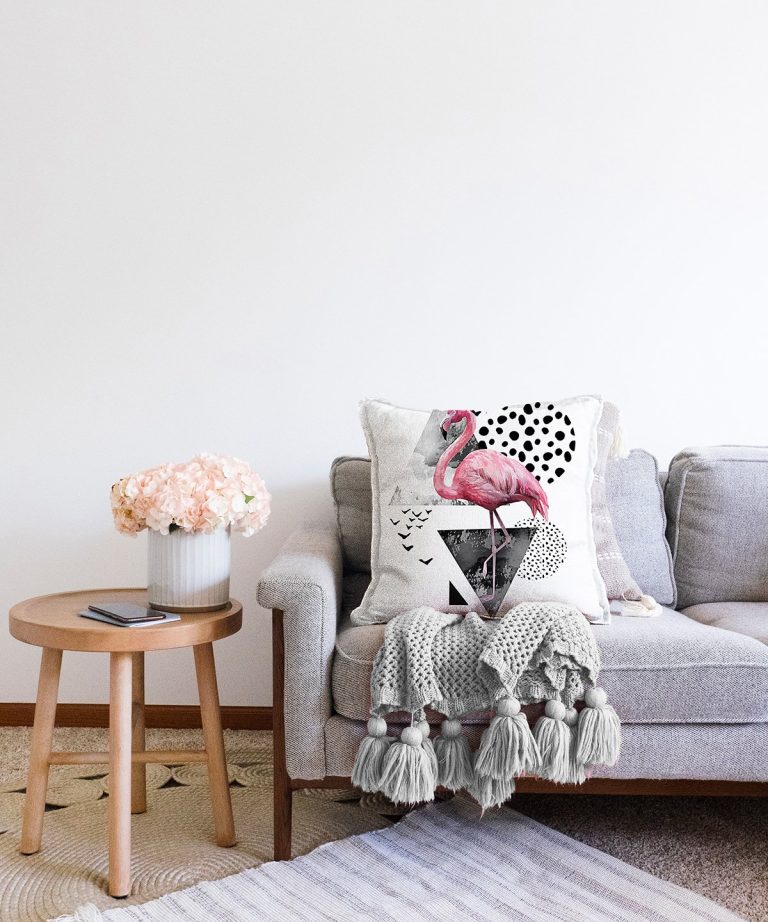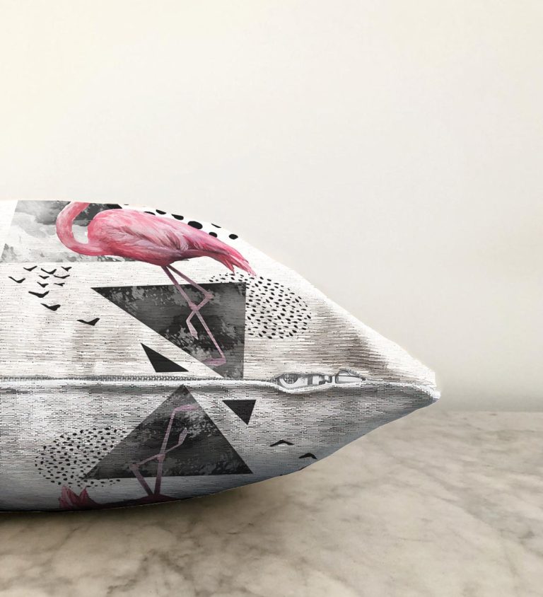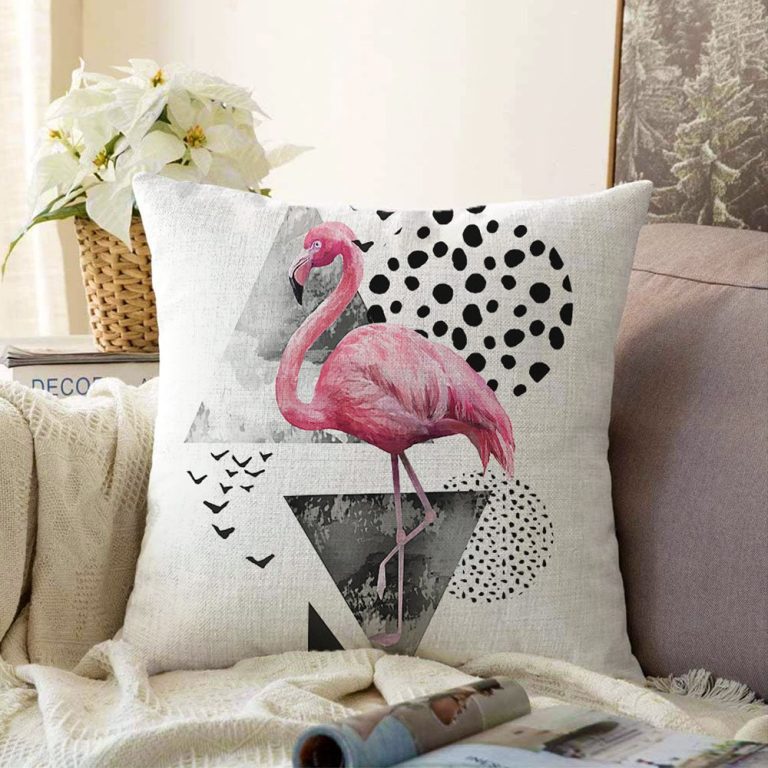 Martı Desenli Flamingo Temalı Dijital Baskılı Raşel Yastık Kırlent Kılıfı