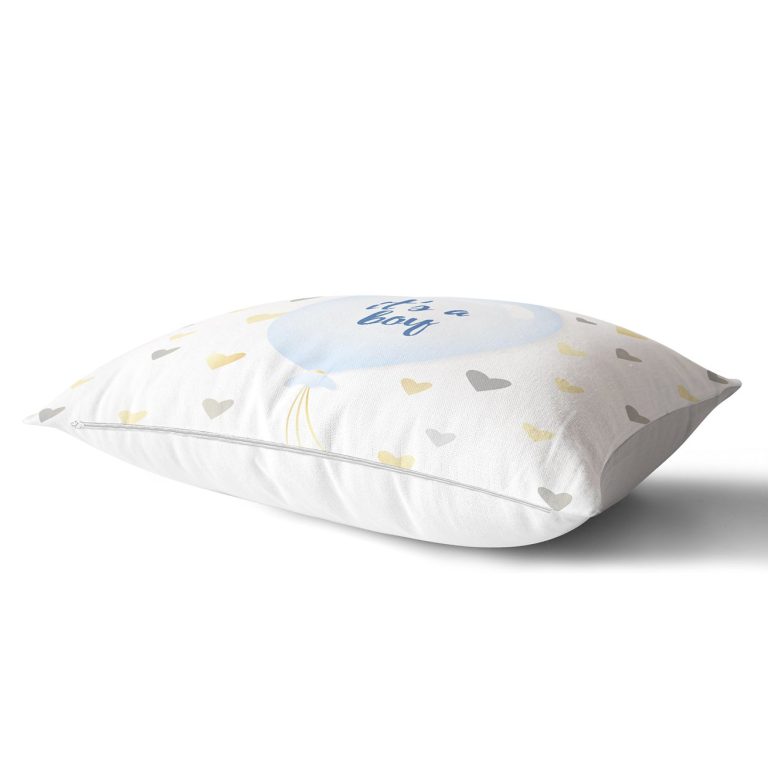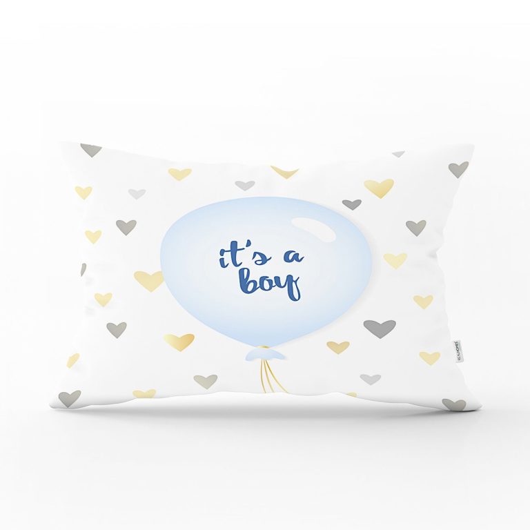 Mavi Balon ve Altın Kalpler Özel Tasarımlı Dekoratif Çocuk Odası Dikdörtgen Yastık Kılıfı