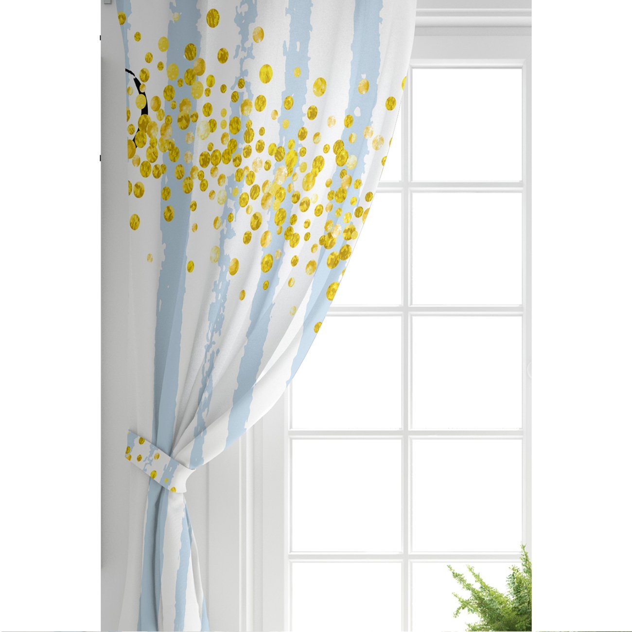 Mavi Beyaz Çizgili Sarı Puanlı Temalı Çocuk Odası Fon Perde