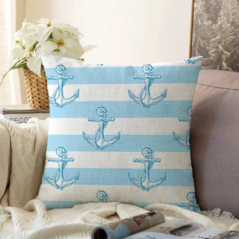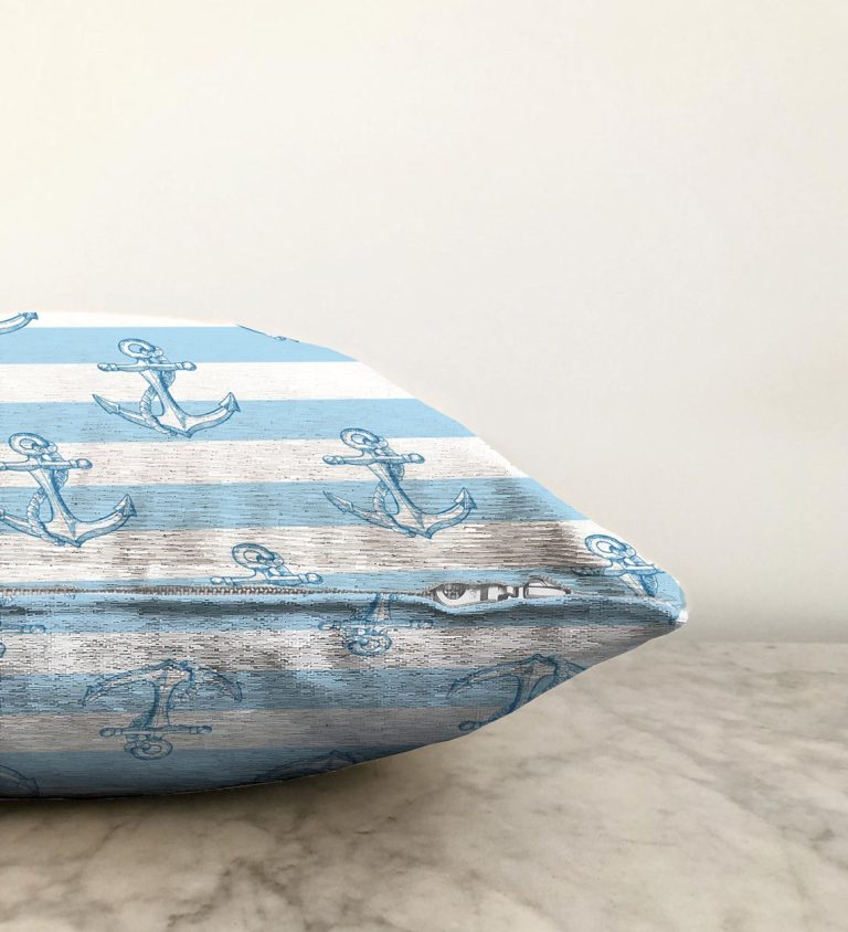 Mavi Beyaz Denizci Dijital Baskılı Raşel Yastık Kırlent Kılıfı