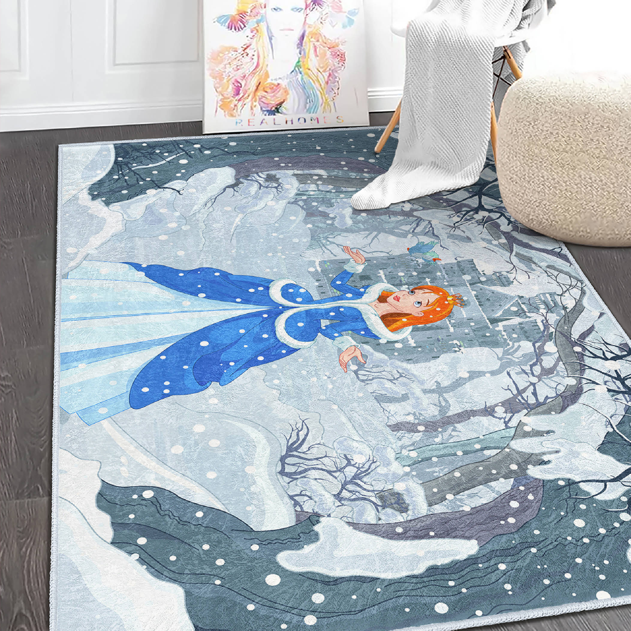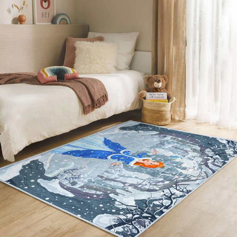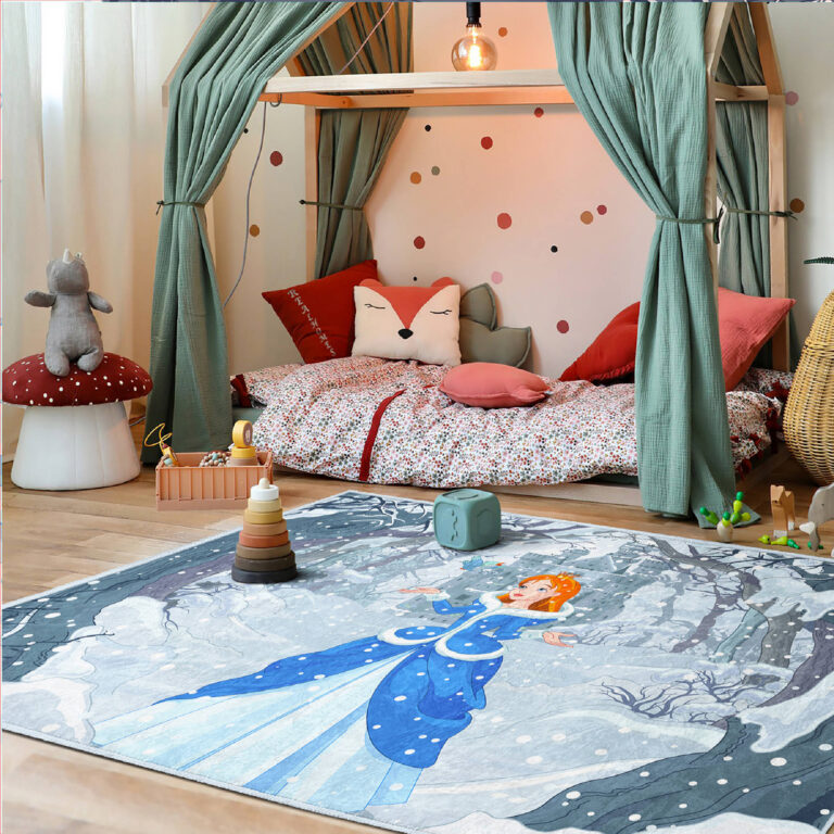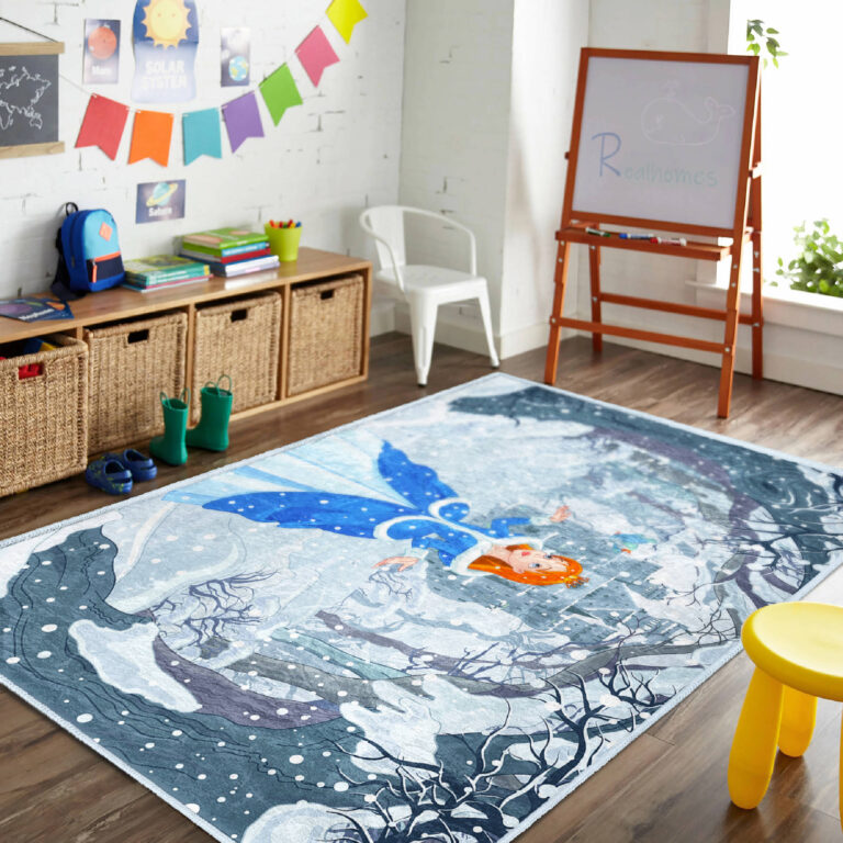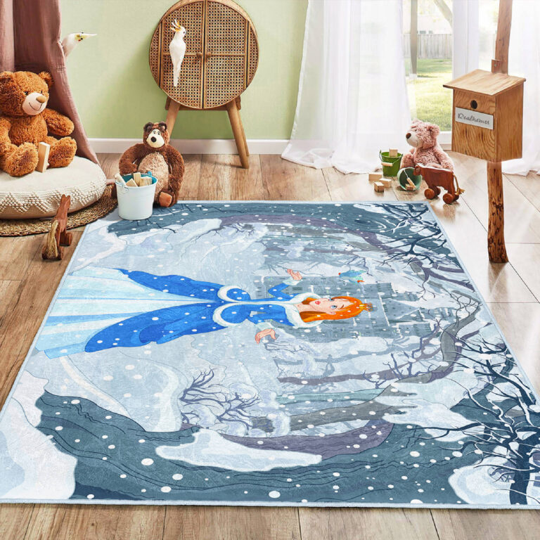 Mavi – Beyaz Renkli Buz Temalı Elmas Desenli Çocuk Halısı | Yıkanabilir Kaymaz Tabanlı