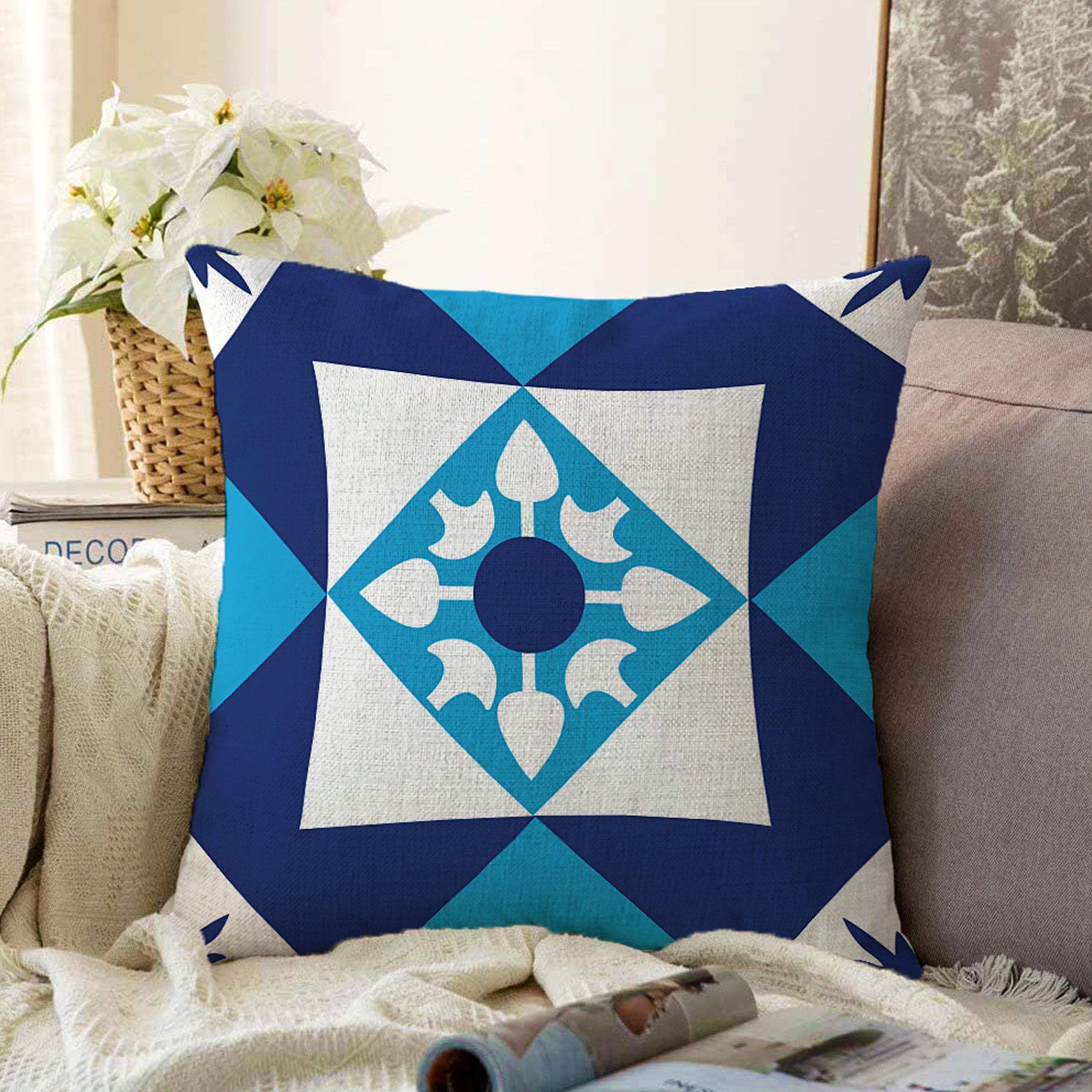 Mavi Çini Desenli Dijital Baskılı Raşel Yastık Kırlent Kılıfı