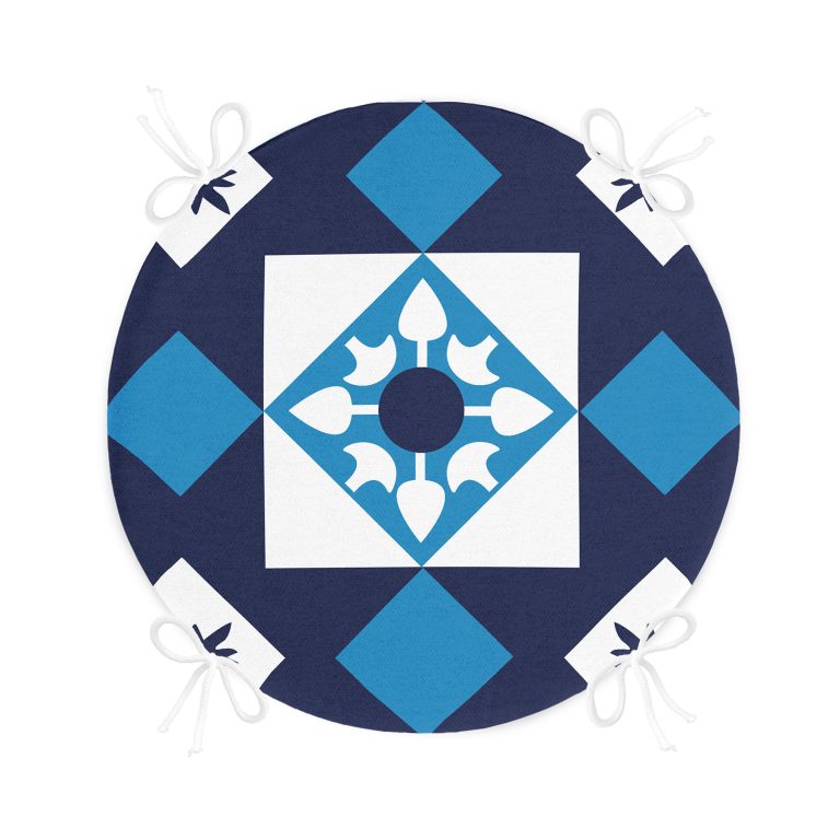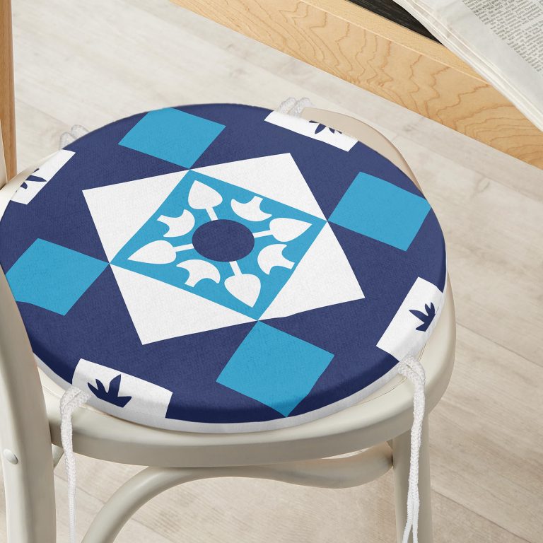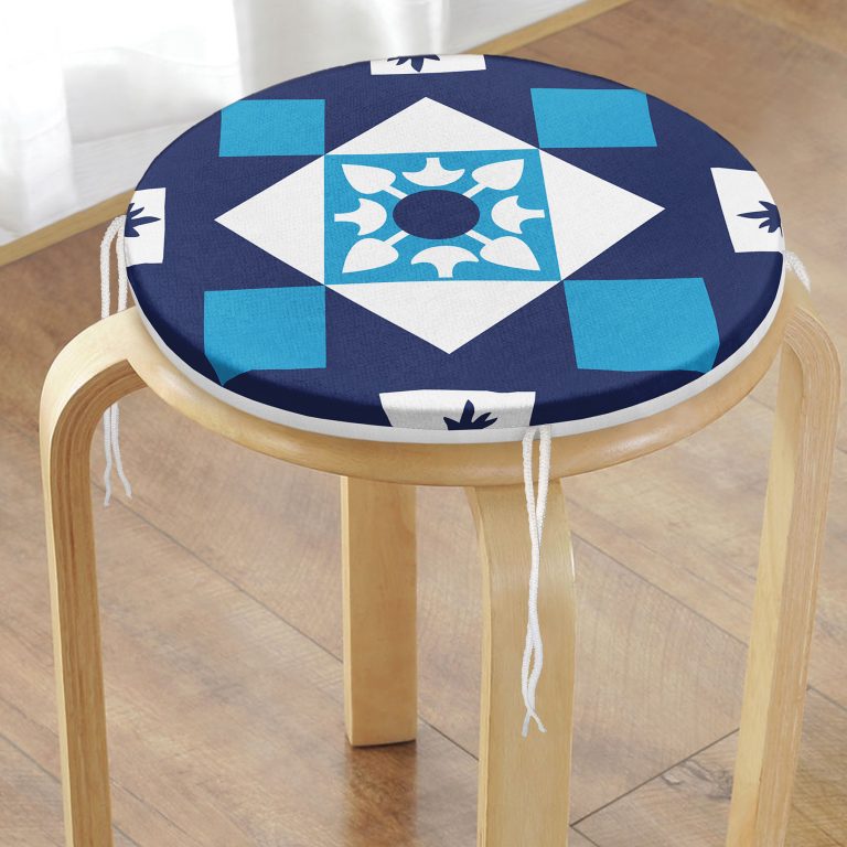 Mavi Çini Desenli Dijital Baskılı Yuvarlak Fermuarlı Sandalye Minderi