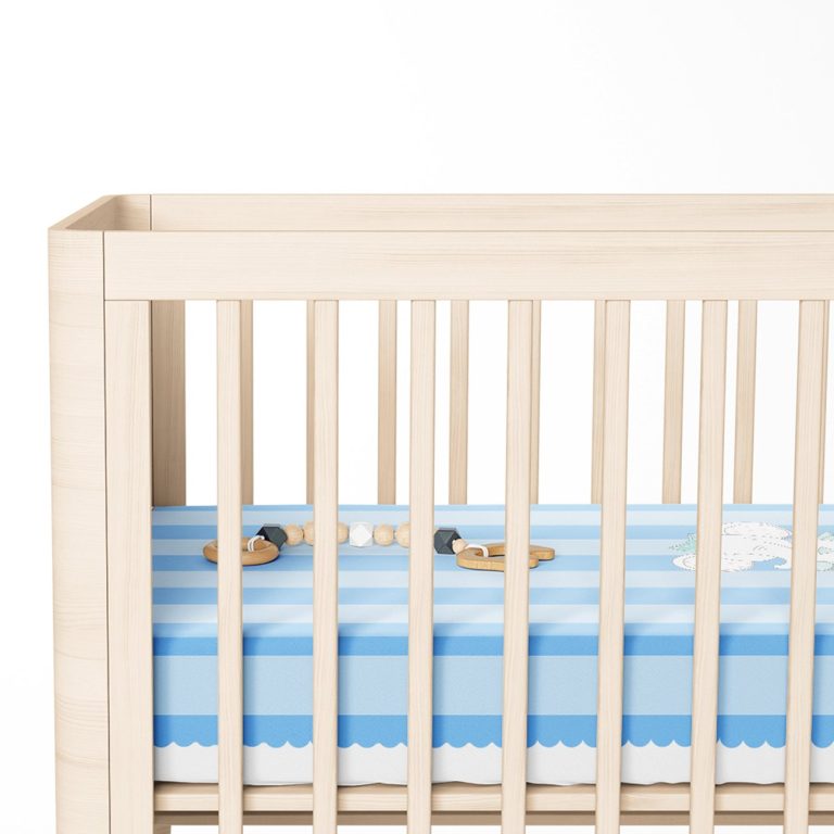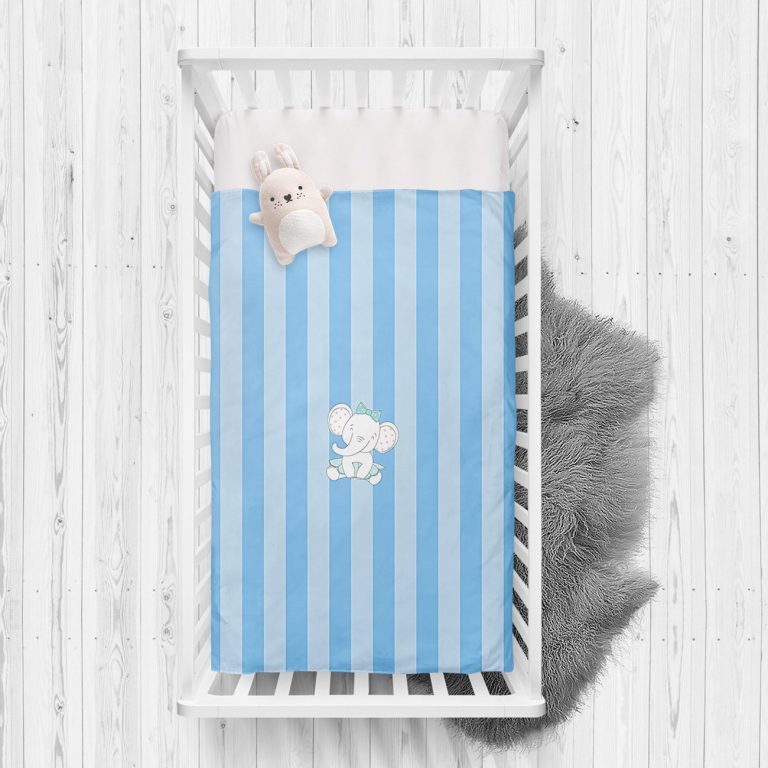 Mavi Çizgili Fil Motifli Bebek Odası Yatak Örtüsü