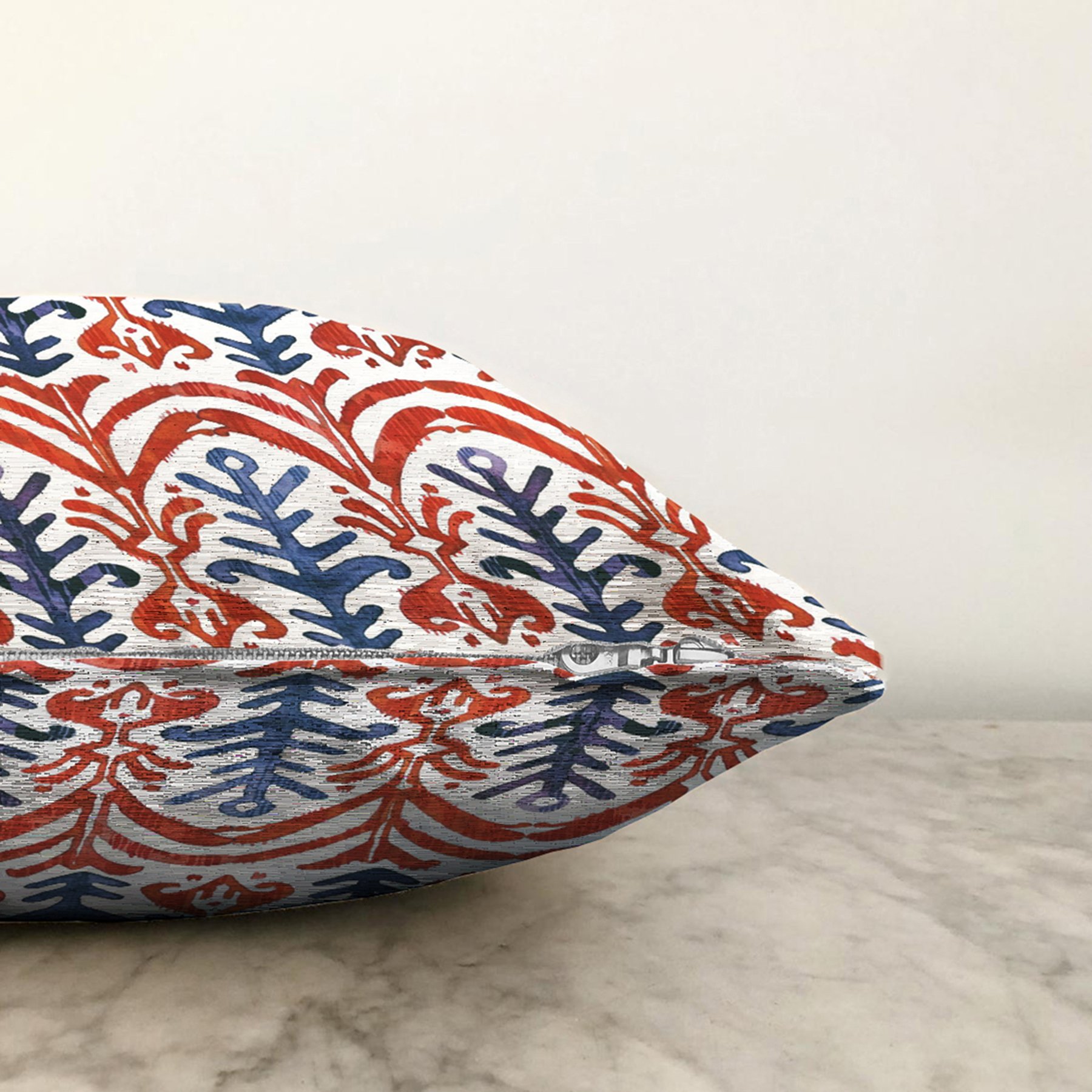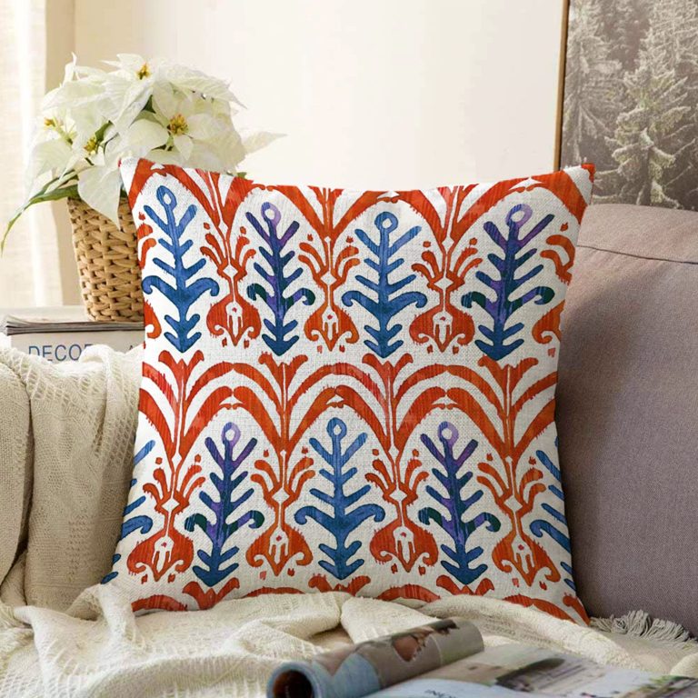 Mavi Kırmızı Damask Motifli Dekoratif Raşel Yastık Kırlent Kılıfı