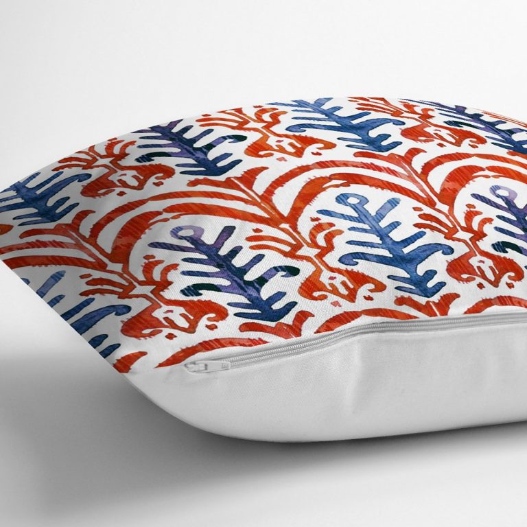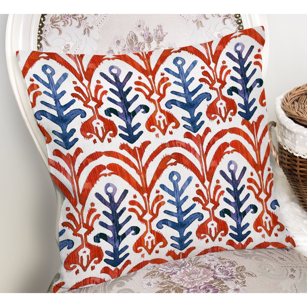 Mavi Kırmızı Damask Motifli Dekoratif Yastık Kırlent Kılıfı