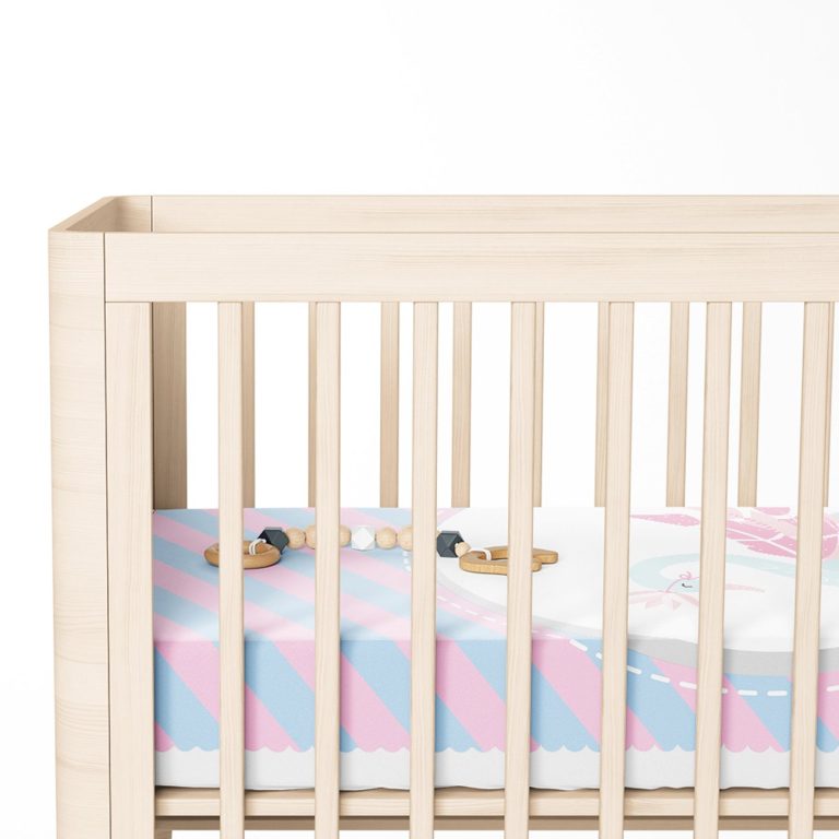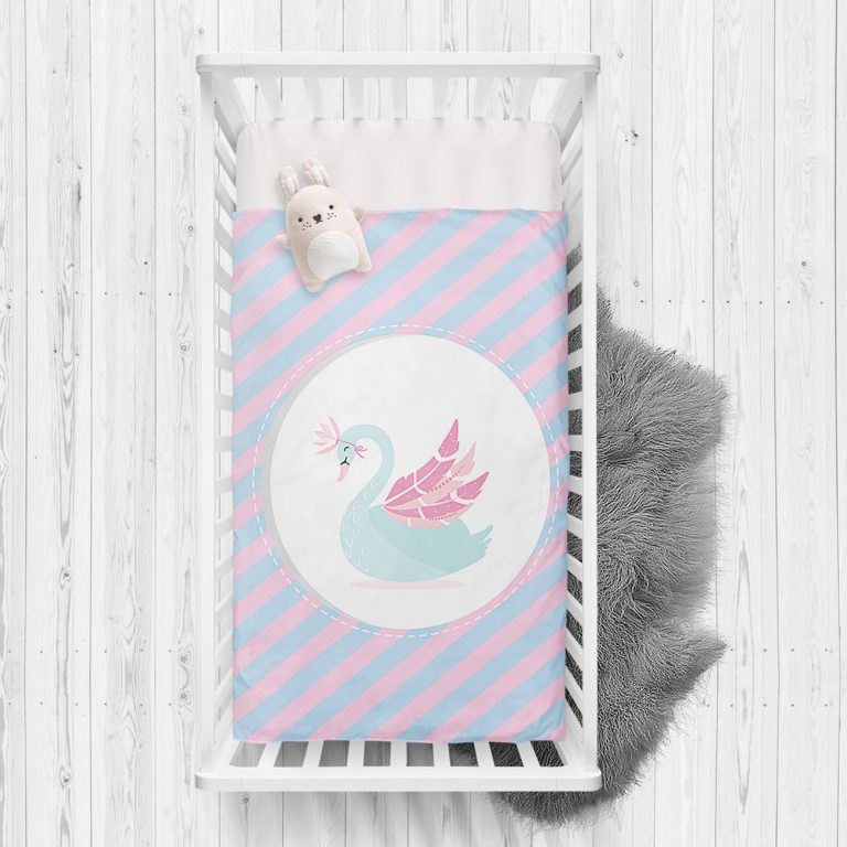 Mavi Pembe Çizgili Kuğu Tasarımlı Çocuk Odası Yatak Örtüsü