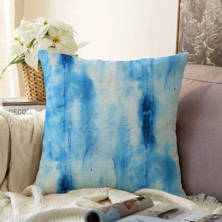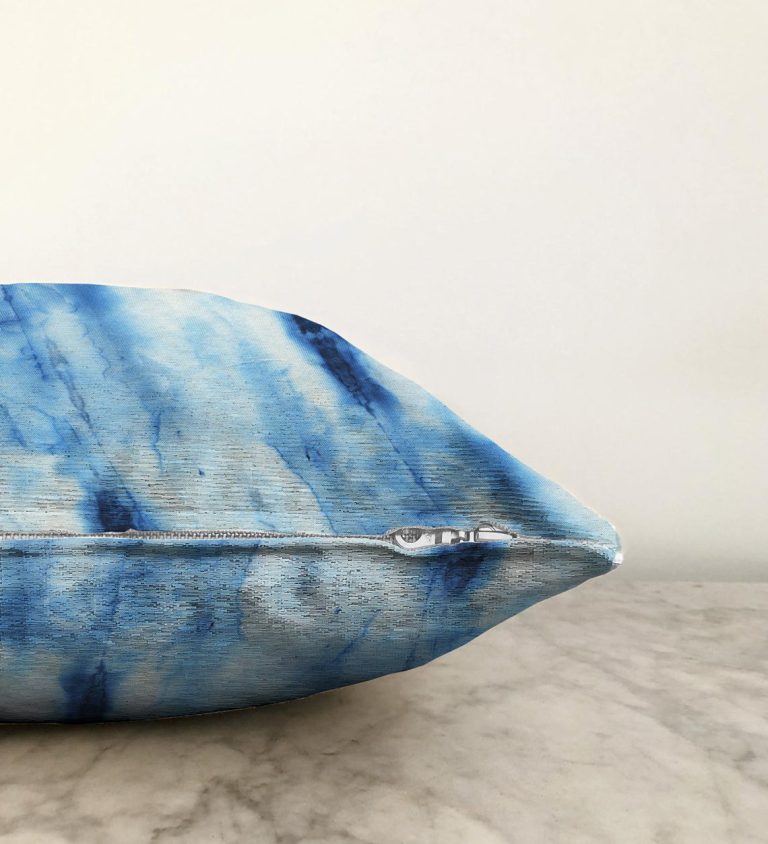 Mavi Renkli Ebru Desenli Dijital Baskılı Modern Raşel Yastık Kılıfı