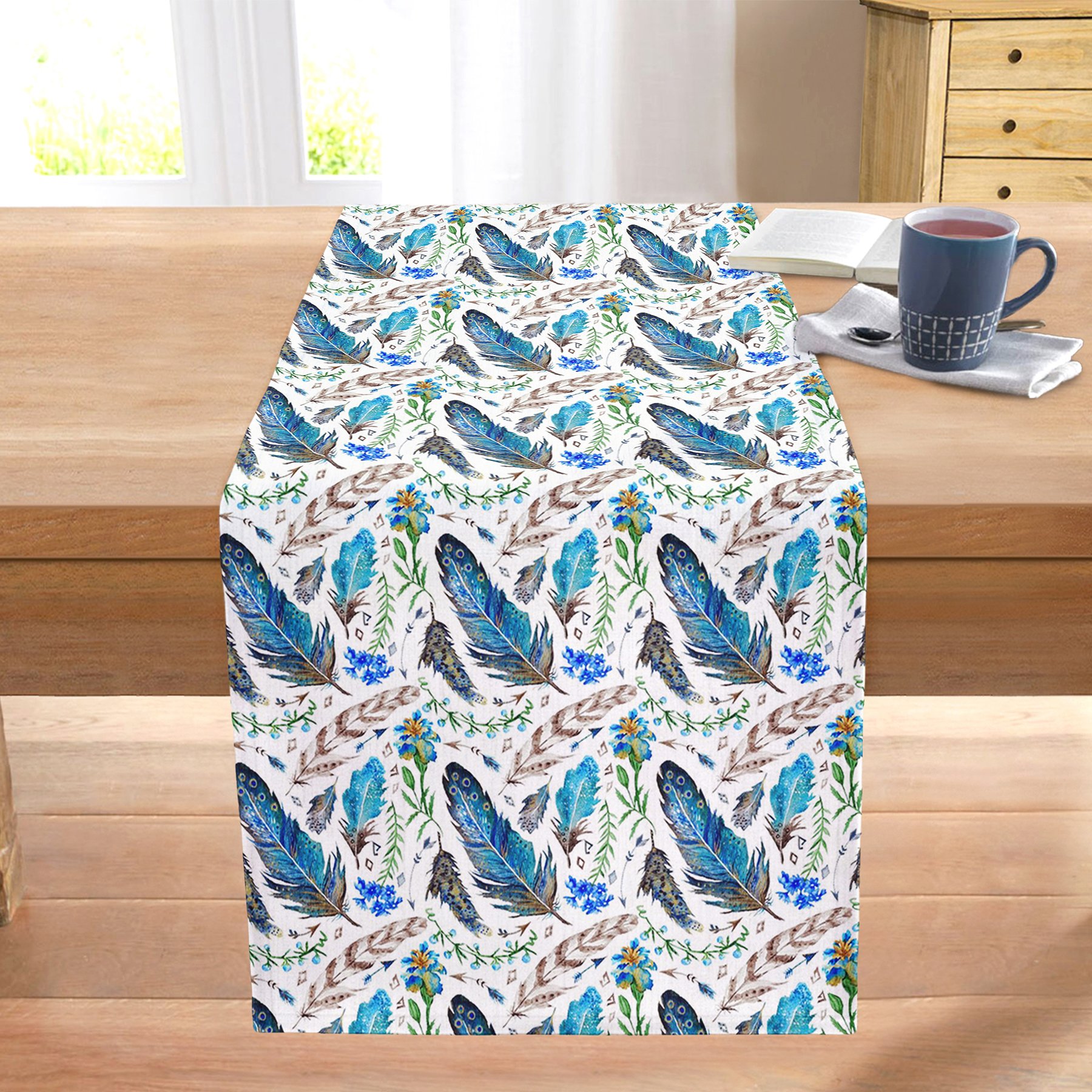 Mavi Tüy Motifli Özel Tasarım Modern Dikişli Şönil Runner