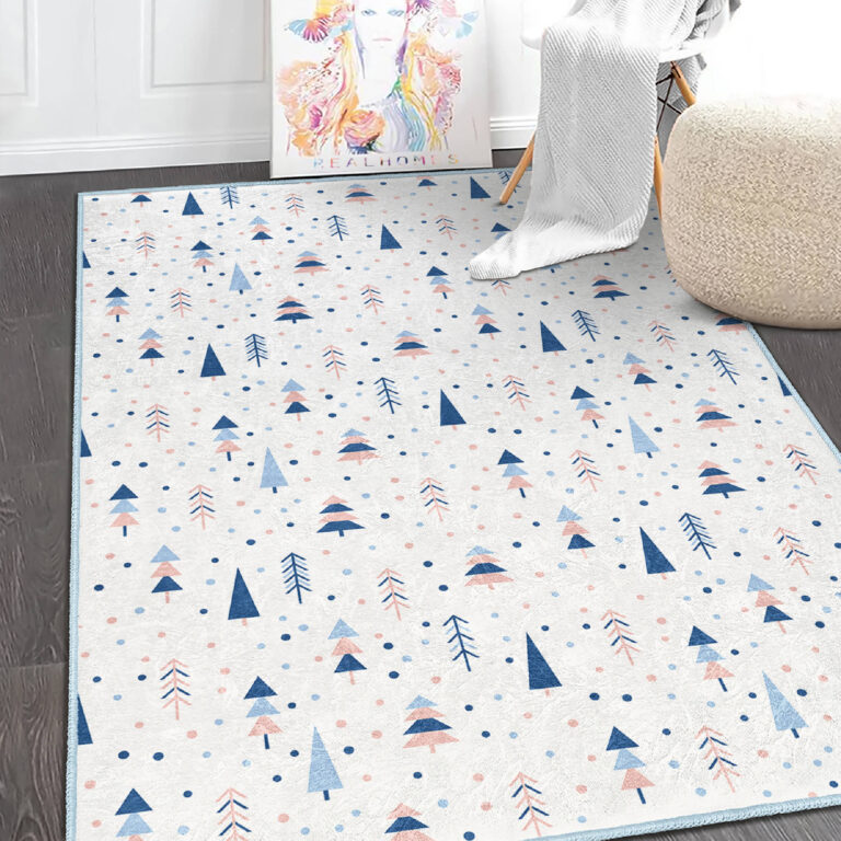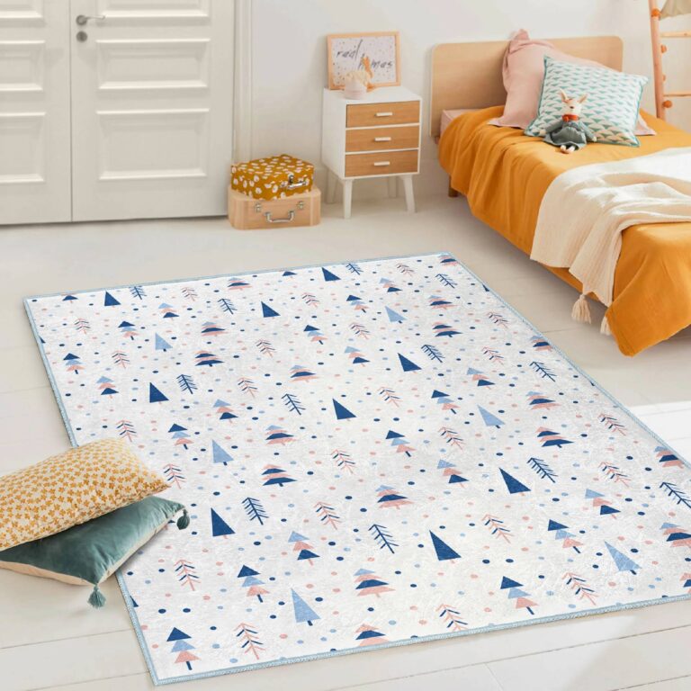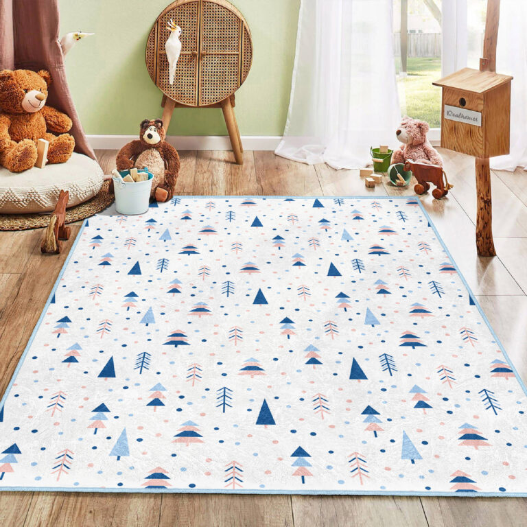 Mavi ve Pembe İkili Ağaç Desenli Yıkanabilir Kaymaz Taban Çocuk Halısı