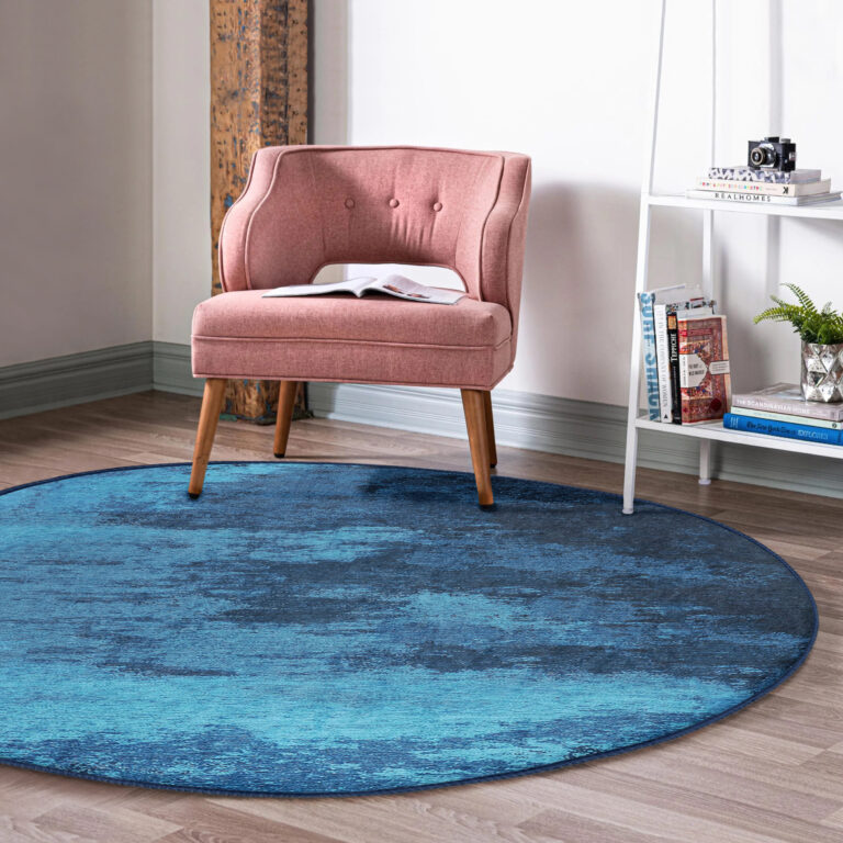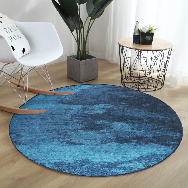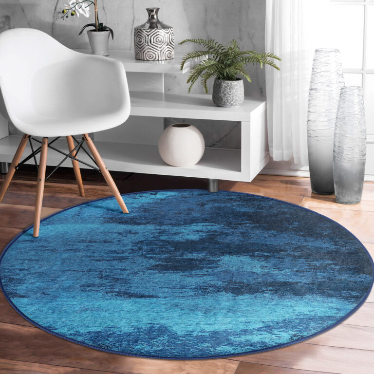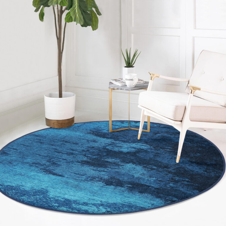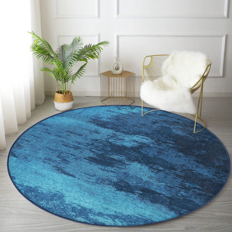 Mavi ve Turkuaz Geçişli Şık Tasarımlı Yuvarlak Salon Halısı – Kaymaz Tabanlı & Yıkanabilir