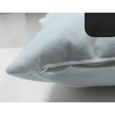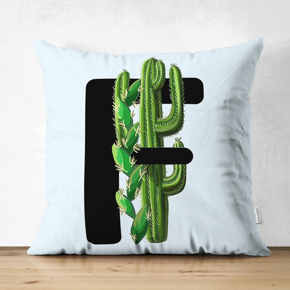 Mavi Zemin Çiçek Desenli Siyah F Harfi Özel Tasarım Modern Suet Yastık Kırlent Kılıfı
