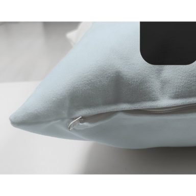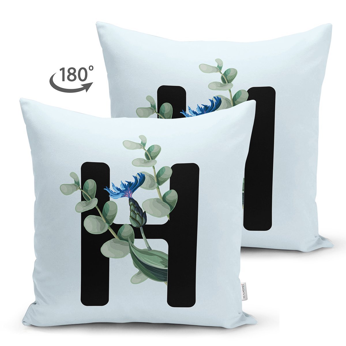 Mavi Zemin Çiçek Desenli Siyah H Harfi Özel Tasarım Modern Suet Yastık Kırlent Kılıfı