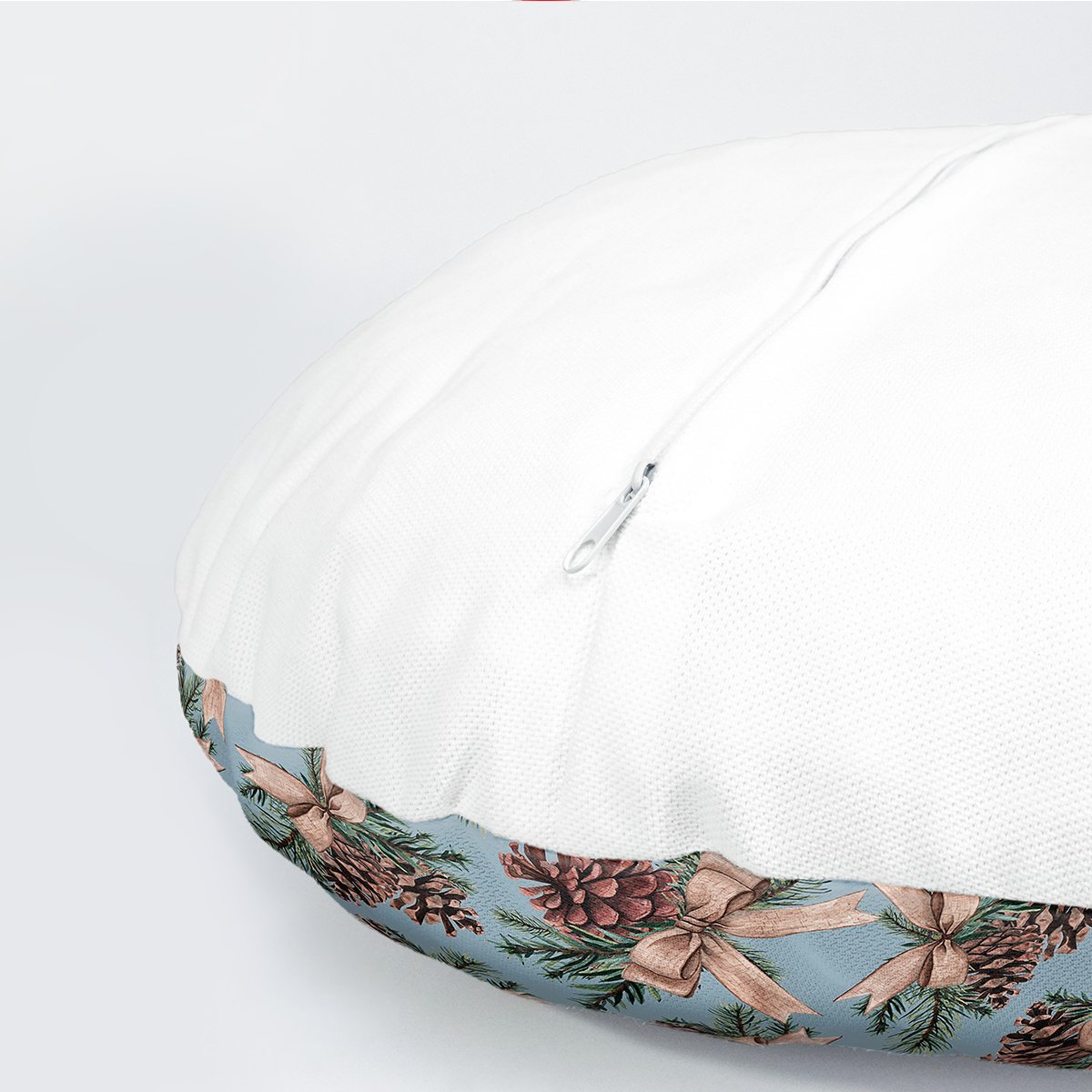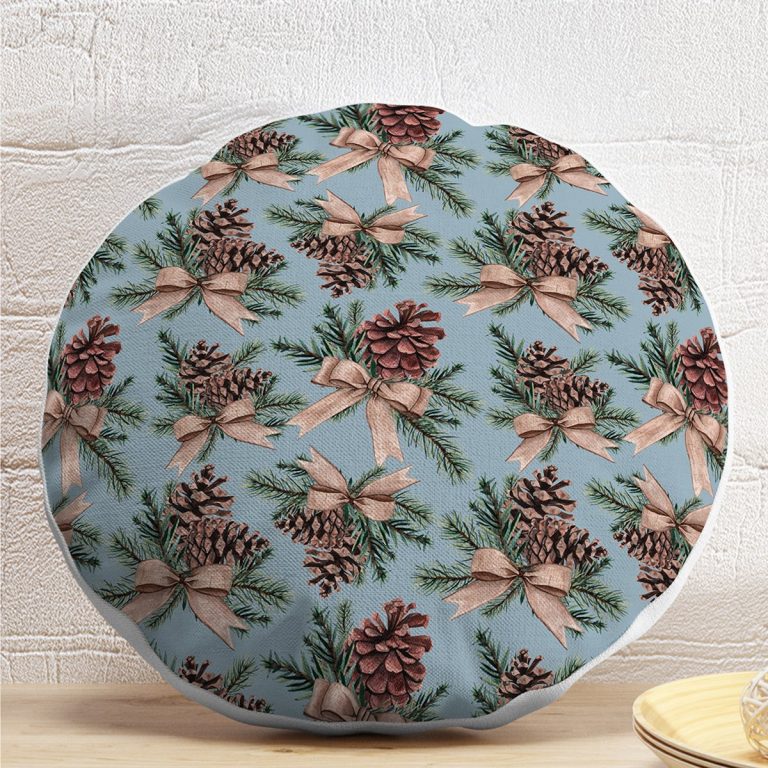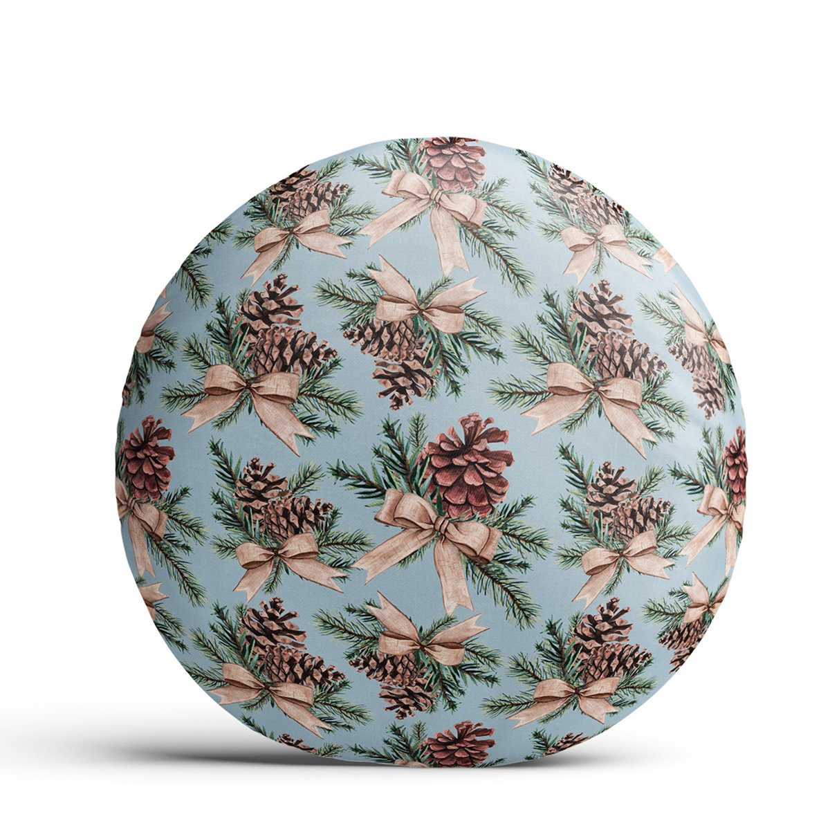 Mavi Zemin Kozalak Tasarımlı Dijital Baskılı Modern Yuvarlak Yastık Kırlent Kılıfı