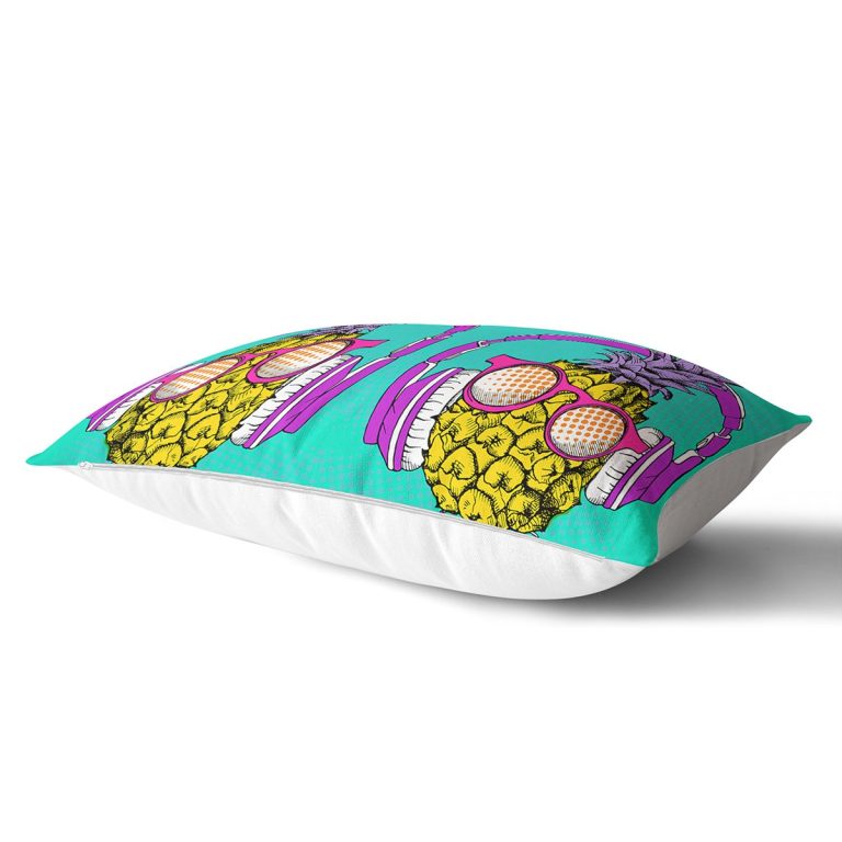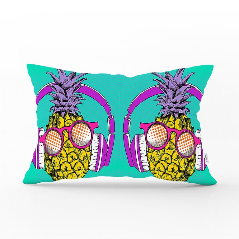 Mavi Zeminde Ananas Desenli Dijital Baskılı Dikdörtgen Yastık Kırlent Kılıfı