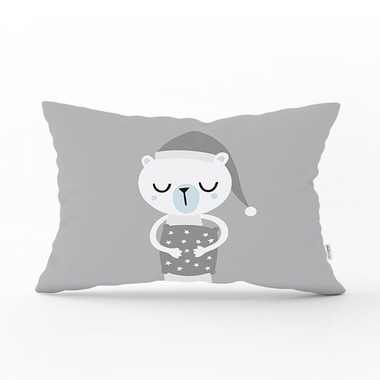 Mavi Zeminde Ayıcık Tasarımlı Bebek Odası Dikdörtgen Yastık Kılıfı