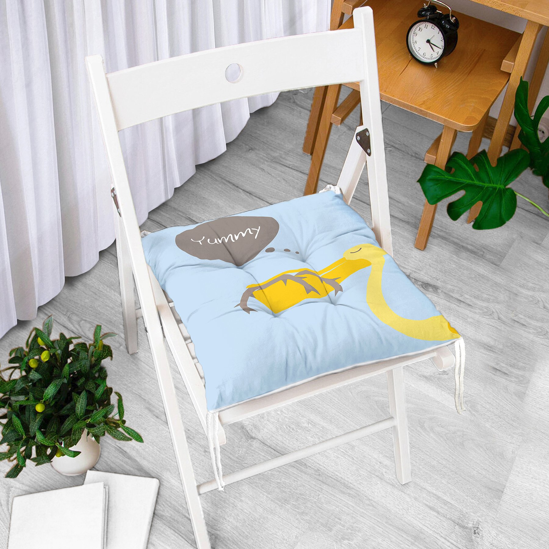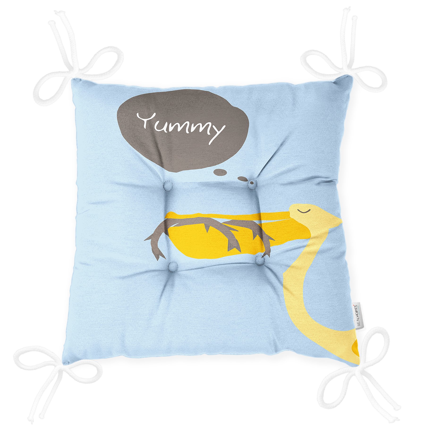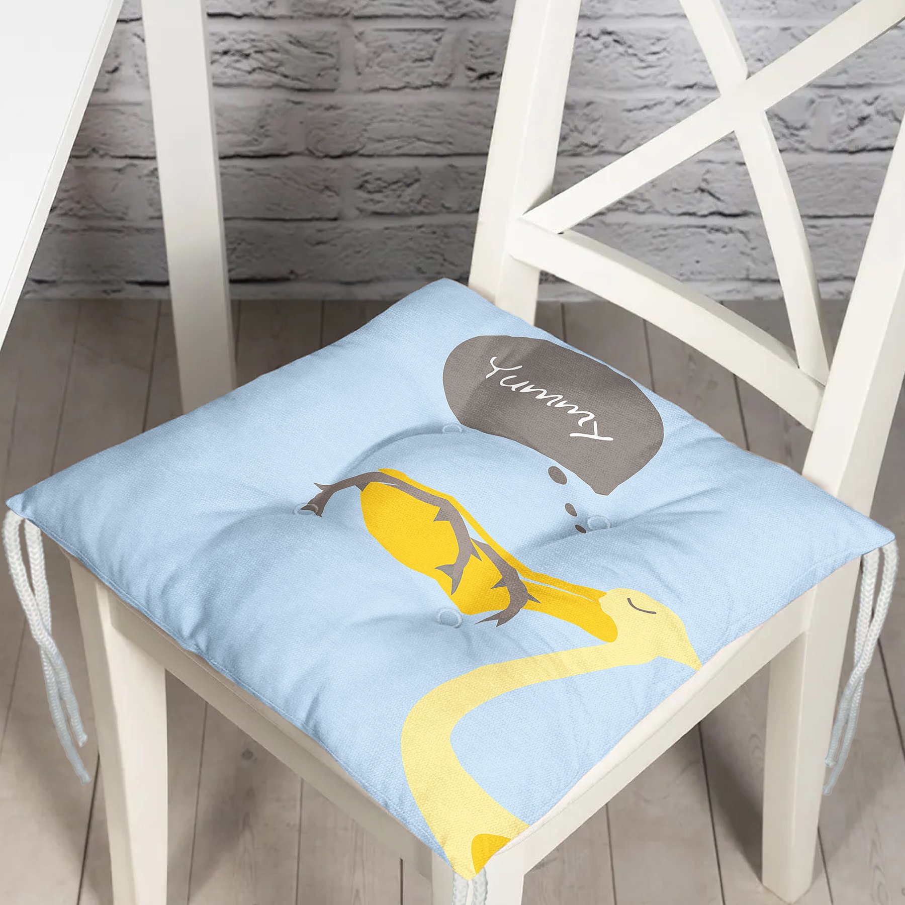 Mavi Zeminde Leylek Motifli Özel Tasarım Çocuk Odası Pofidik Sandalye Minderi
