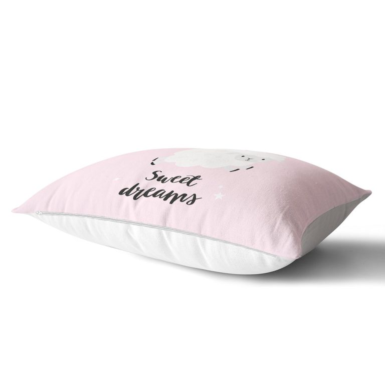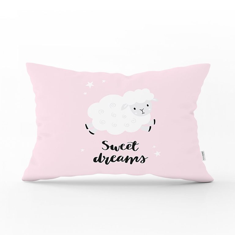 Mavi Zeminde Sevimli Kuzucuk Tasarımlı Bebek Odası Dikdörtgen Yastık Kılıfı