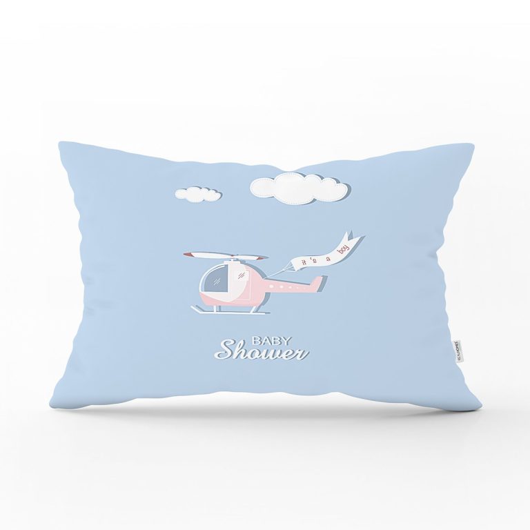 Mavi Zeminde Uçan Balon Desenli Bebek Odası Dikdörtgen Yastık Kılıfı