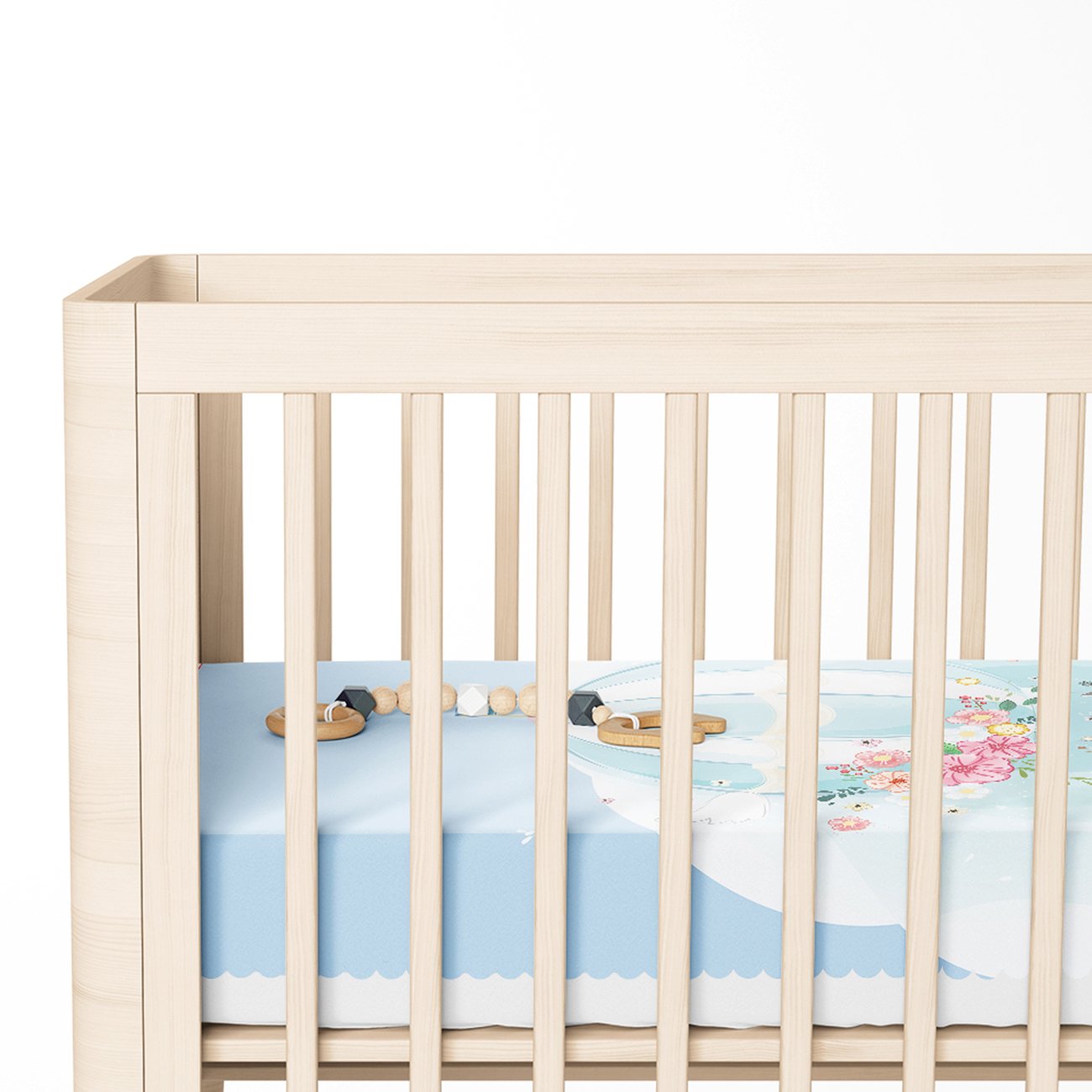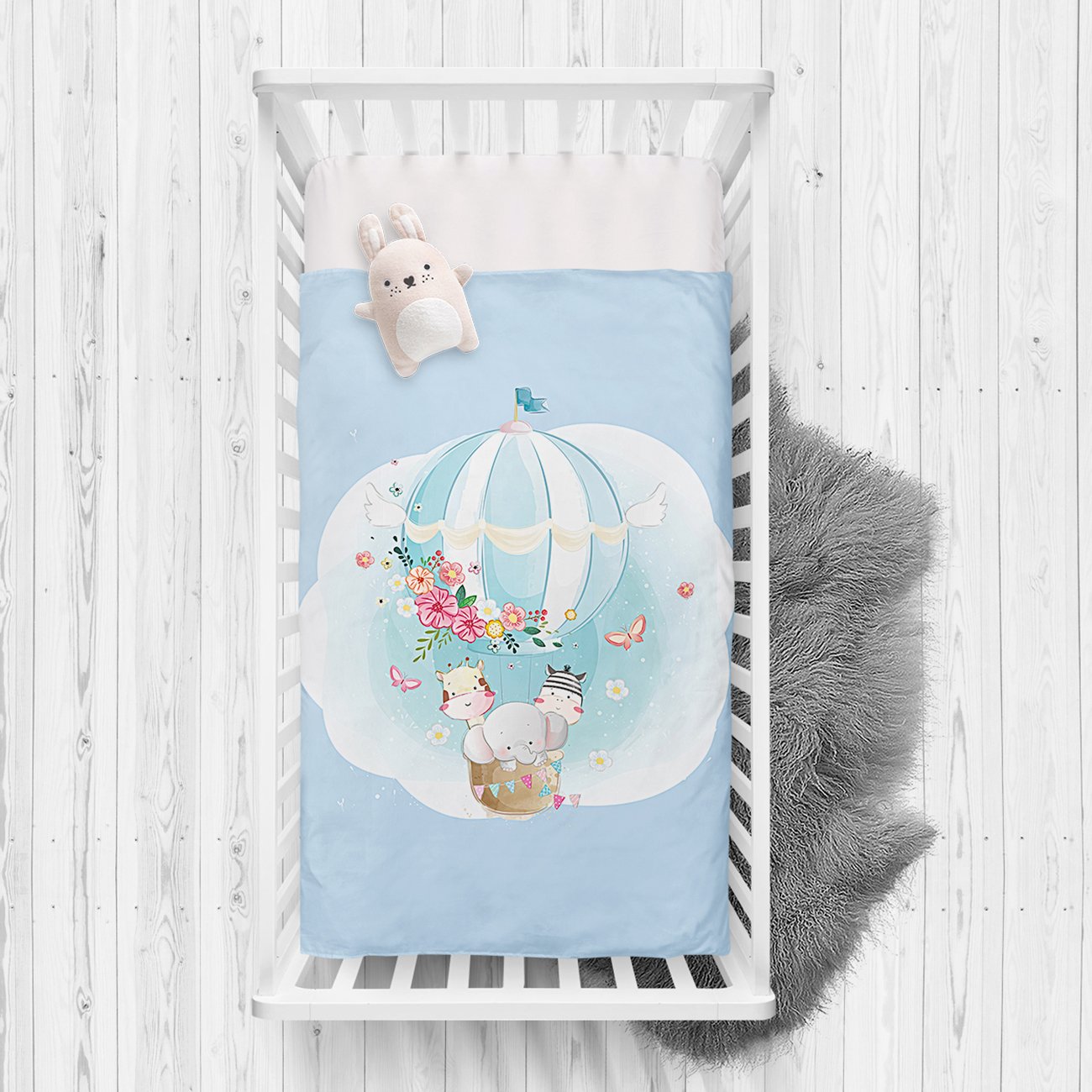 Mavi Zeminde Uçan Balon Desenli Dijital Baskılı Çocuk Odası Yatak Örtüsü