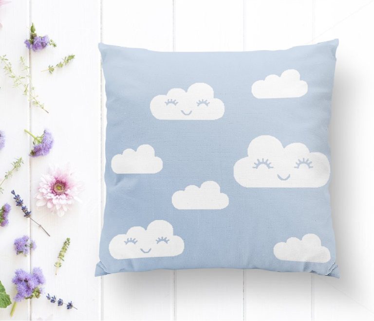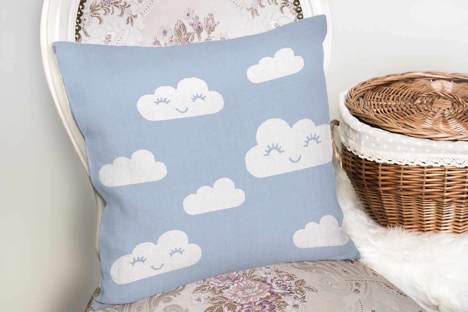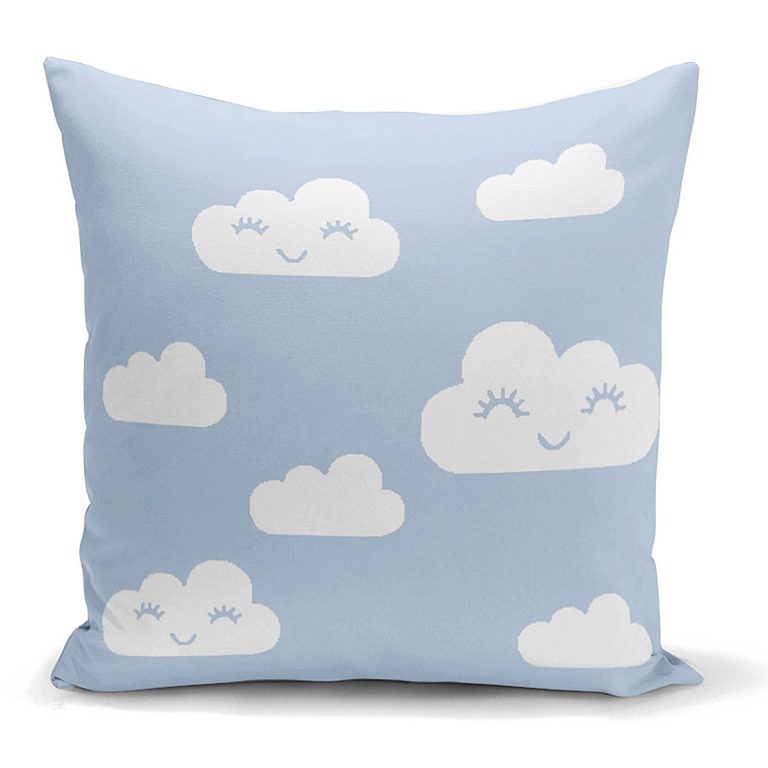 Mavi Zeminli Bulut Temalı Dijital Baskılı Modern Yastık Kılıfı
