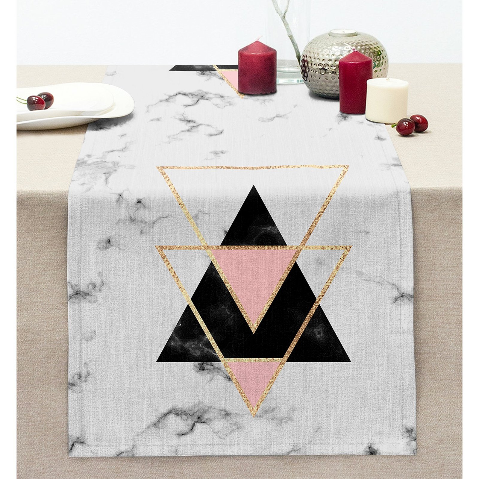 Mermer Zemin Geometrik Üçgen Dijital Baskılı Dikişli Şönil Runner