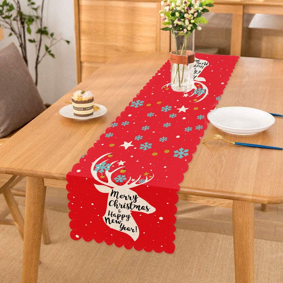 Merry Christmas Geyik Desenli Dekoratif Özel Tasarım Runner