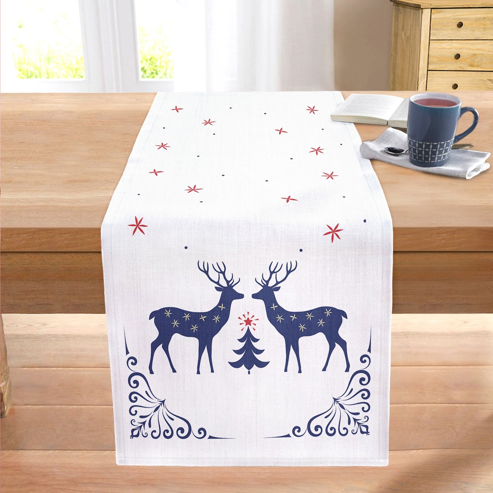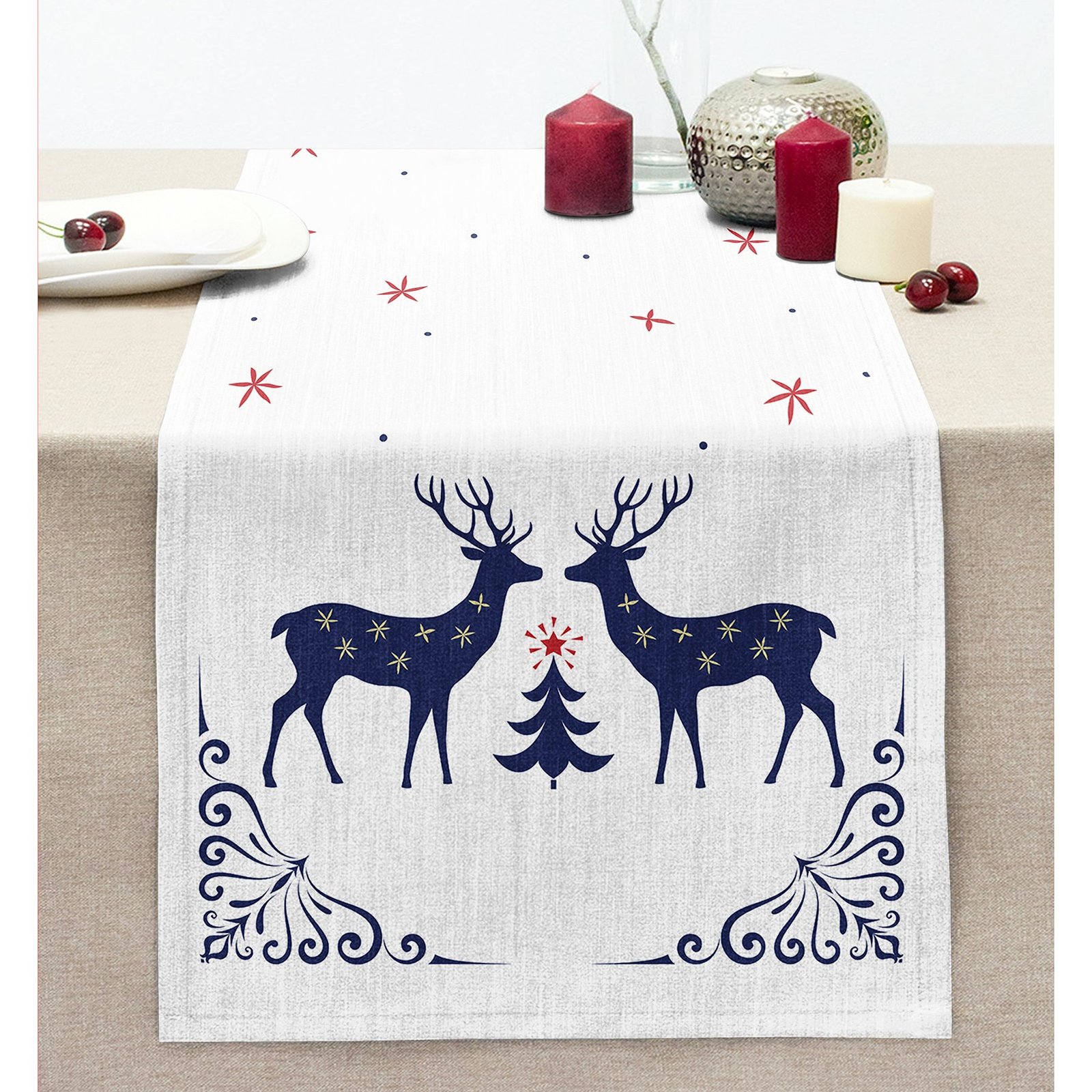 Mery Christmas Geyik Tasarımlı Dijital Baskılı Dekoratif Dikişli Şönil Runner