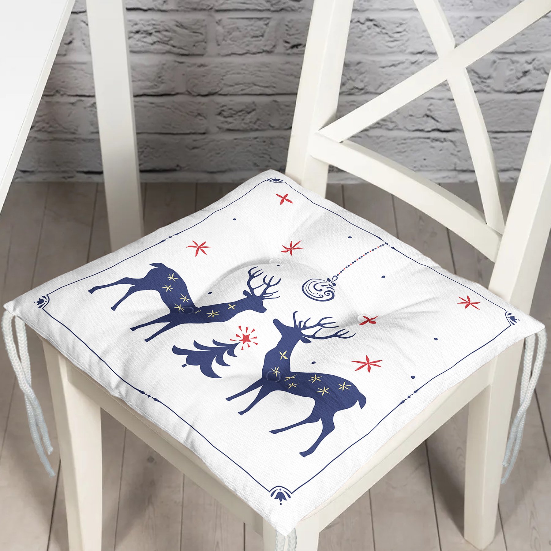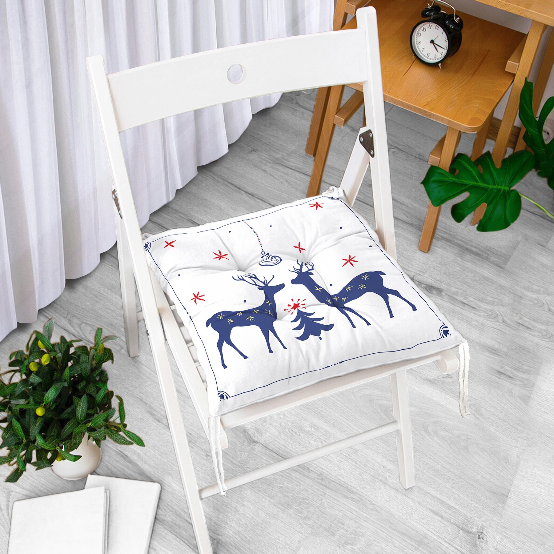 Mery Christmas Geyik Tasarımlı Dijital Baskılı Modern Pofidik Sandalye Minderi