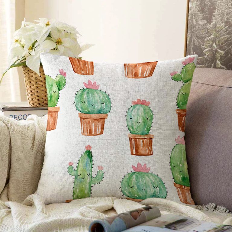 Minimal Kaktüs Tasarımlı Raşel Yastık Kırlent Kılıfı
