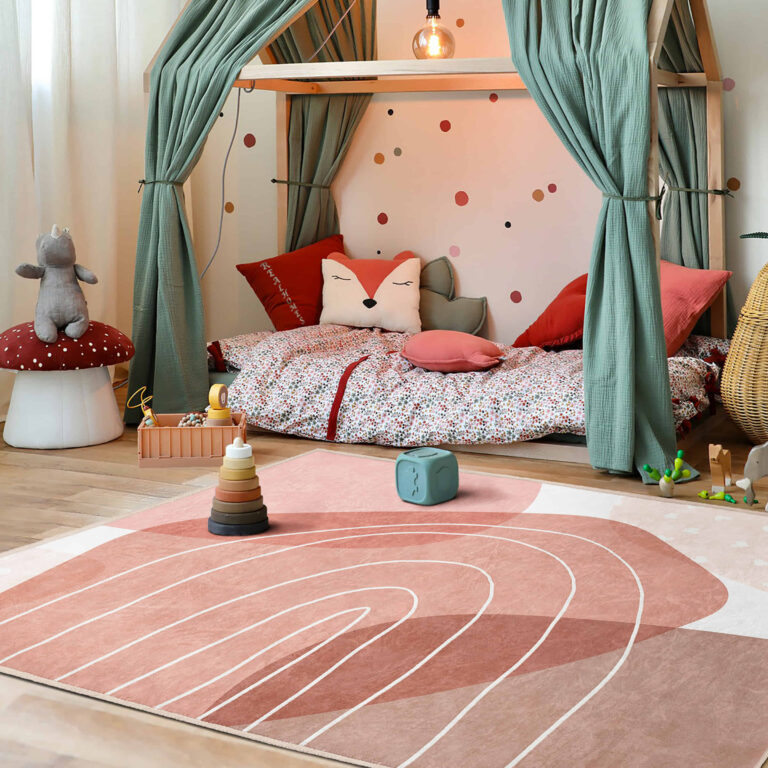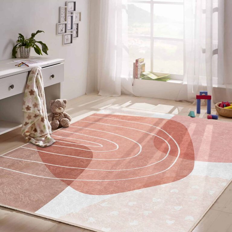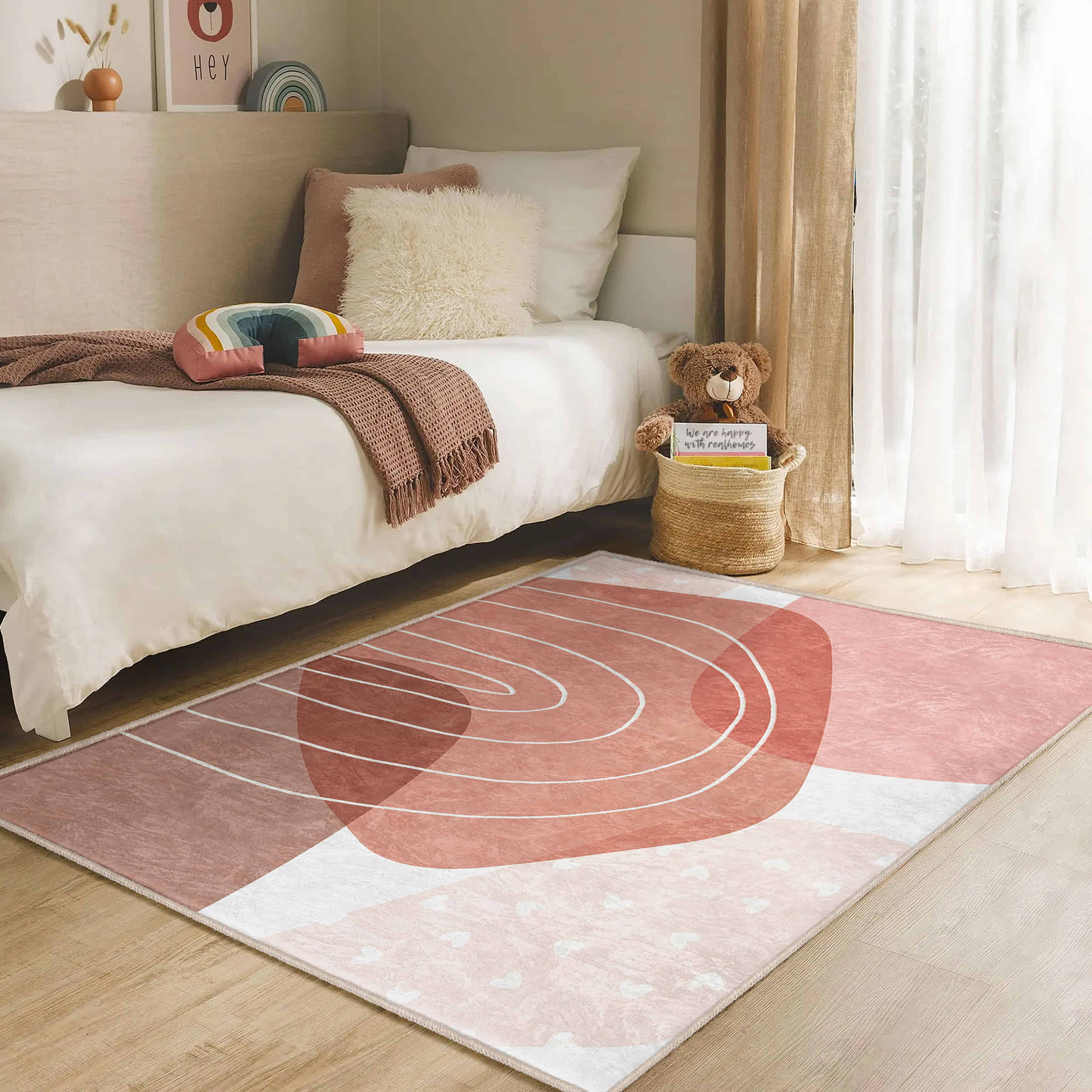 Modern Abajur Motifli Canlı Renklerde Çocuk Odası İçin Kaymaz Taban Yıkanabilir Halı