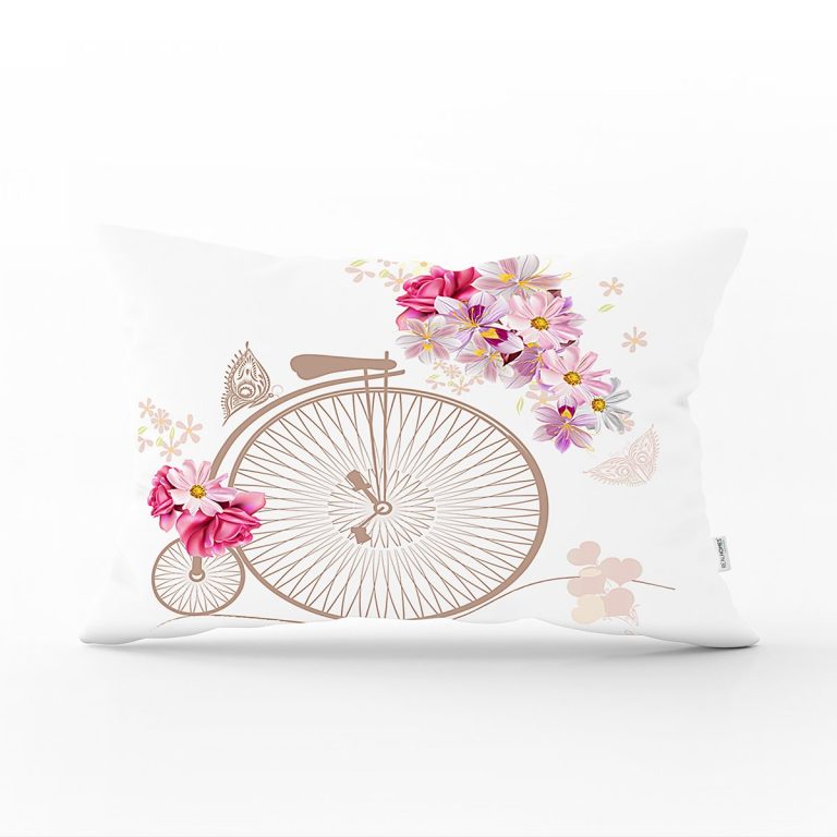 Modern Bisiklet Desenli Dijital Baskılı Dekoratif Dikdörtgen Yastık Kırlent Kılıfı