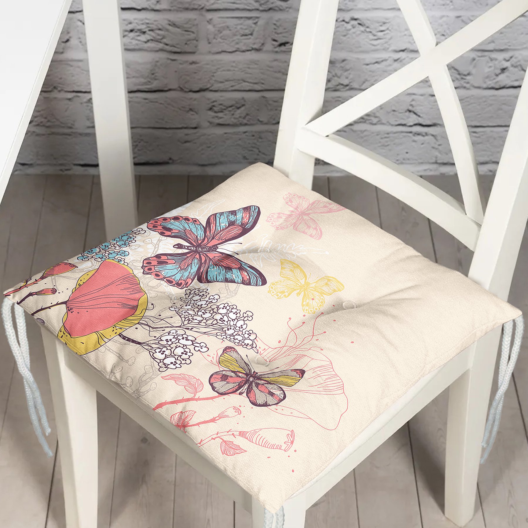 Modern Kelebek Dijital Baskılı Pofidik Kare Sandalye Minderi