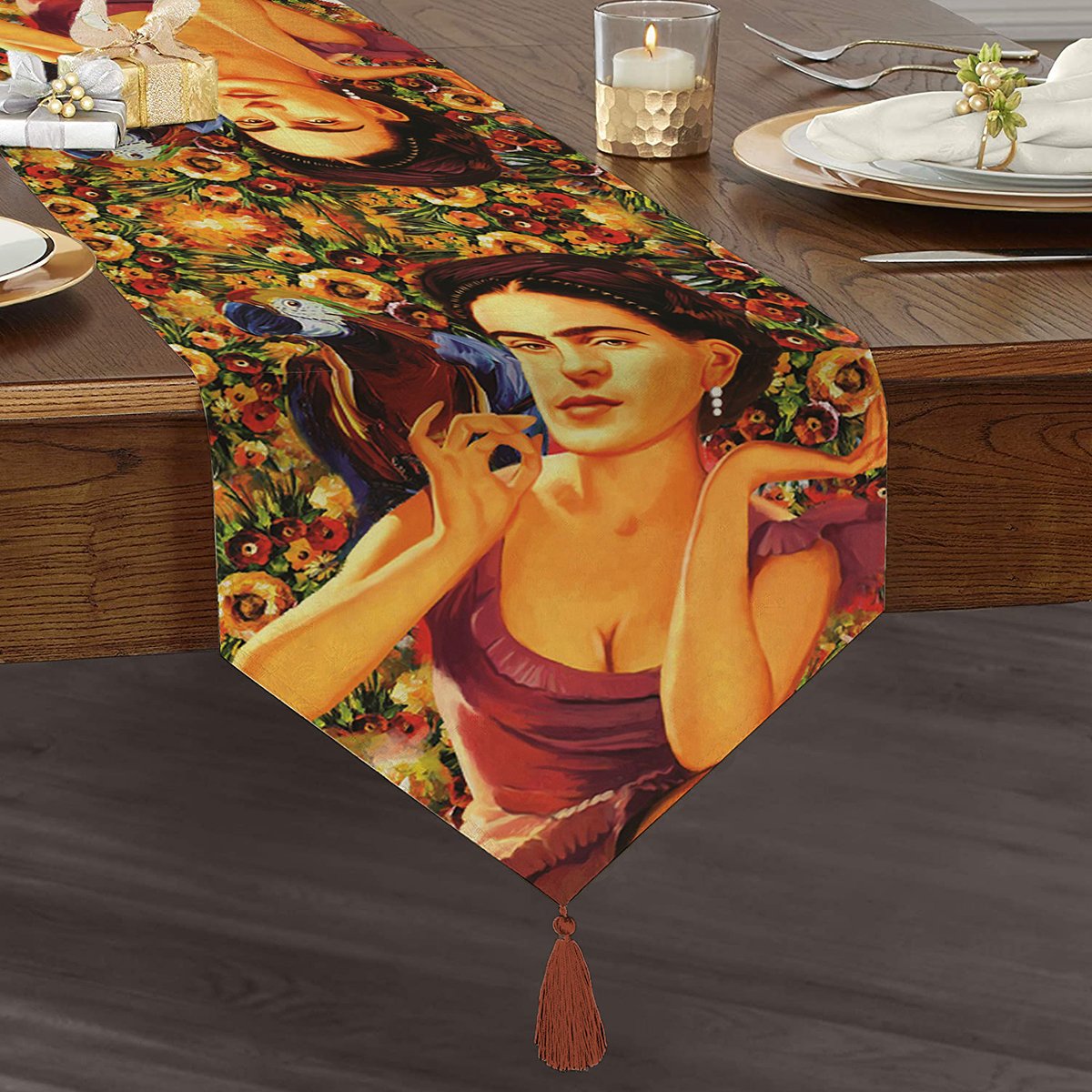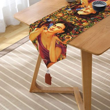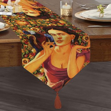 Mutluluk Çiçekleri Vintage Tasarımlı Dijital Baskılı Püsküllü Şönil Üçgen Runner