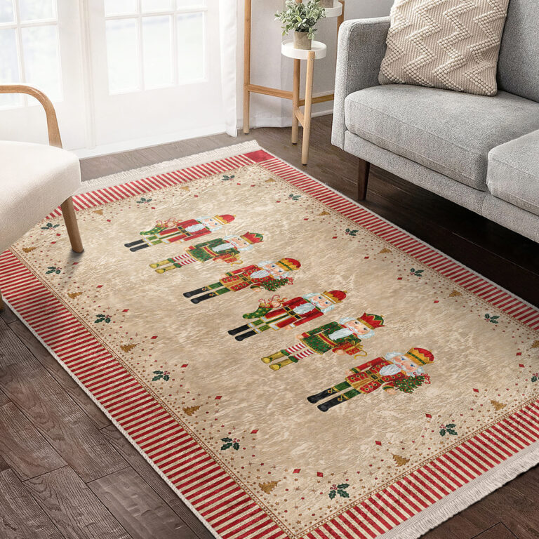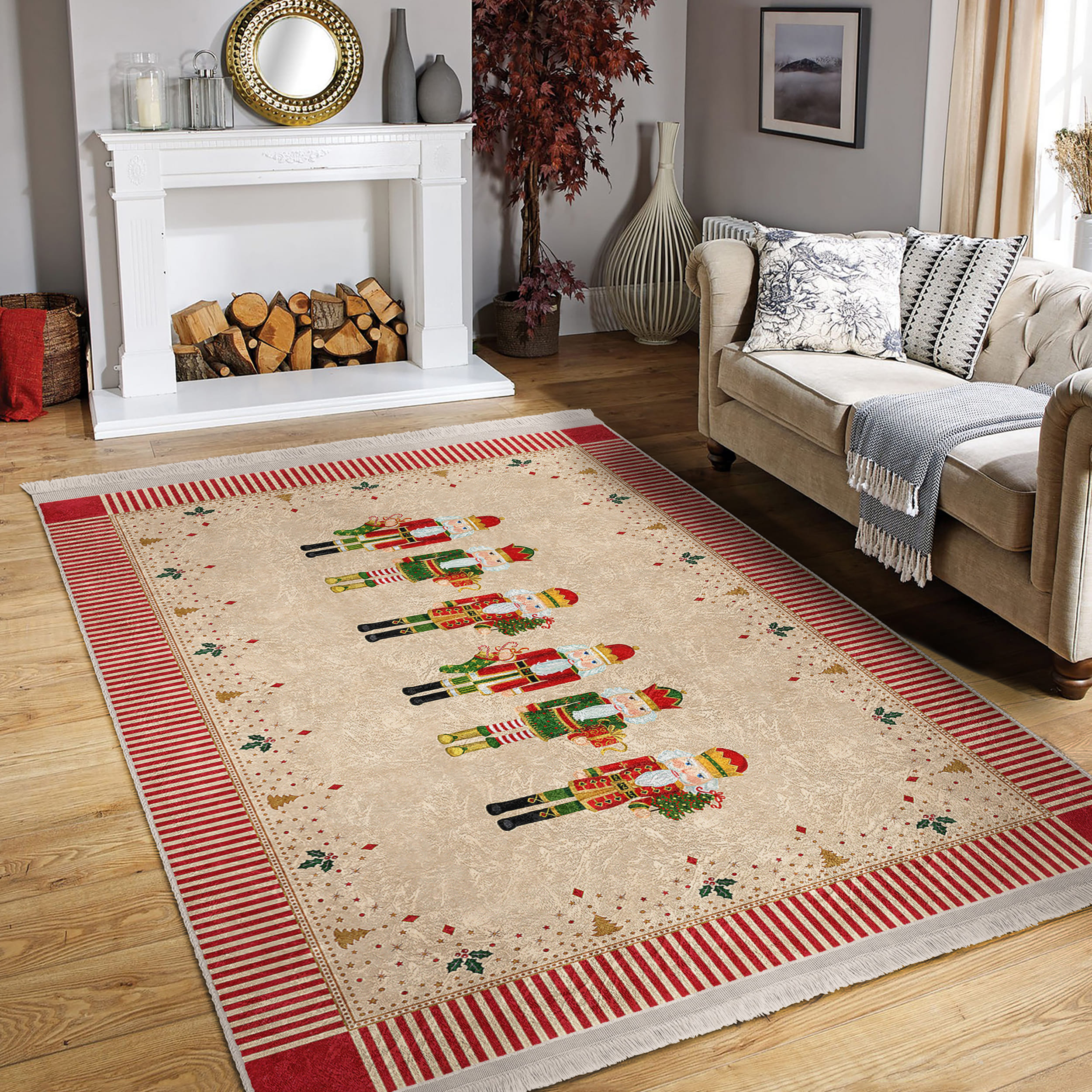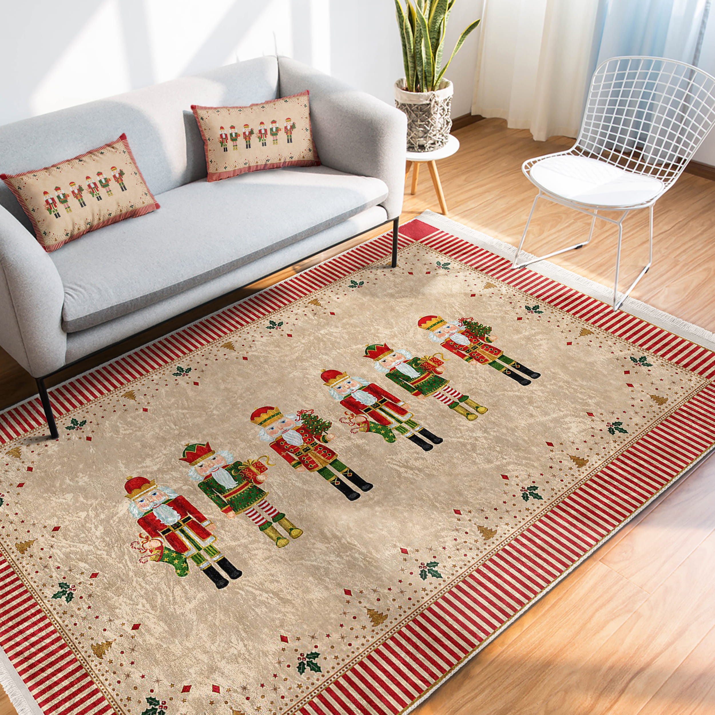 Noel Temalı Çizgi Film Figürleri ile Renkli Şenlik Desenli Salon Halısı – Yıkanabilir Kaymaz Taban