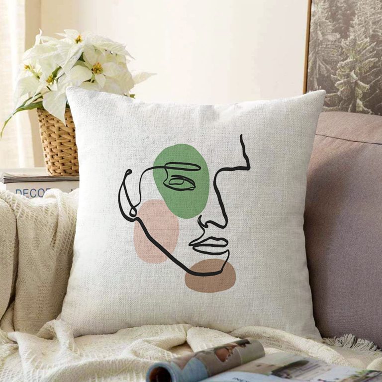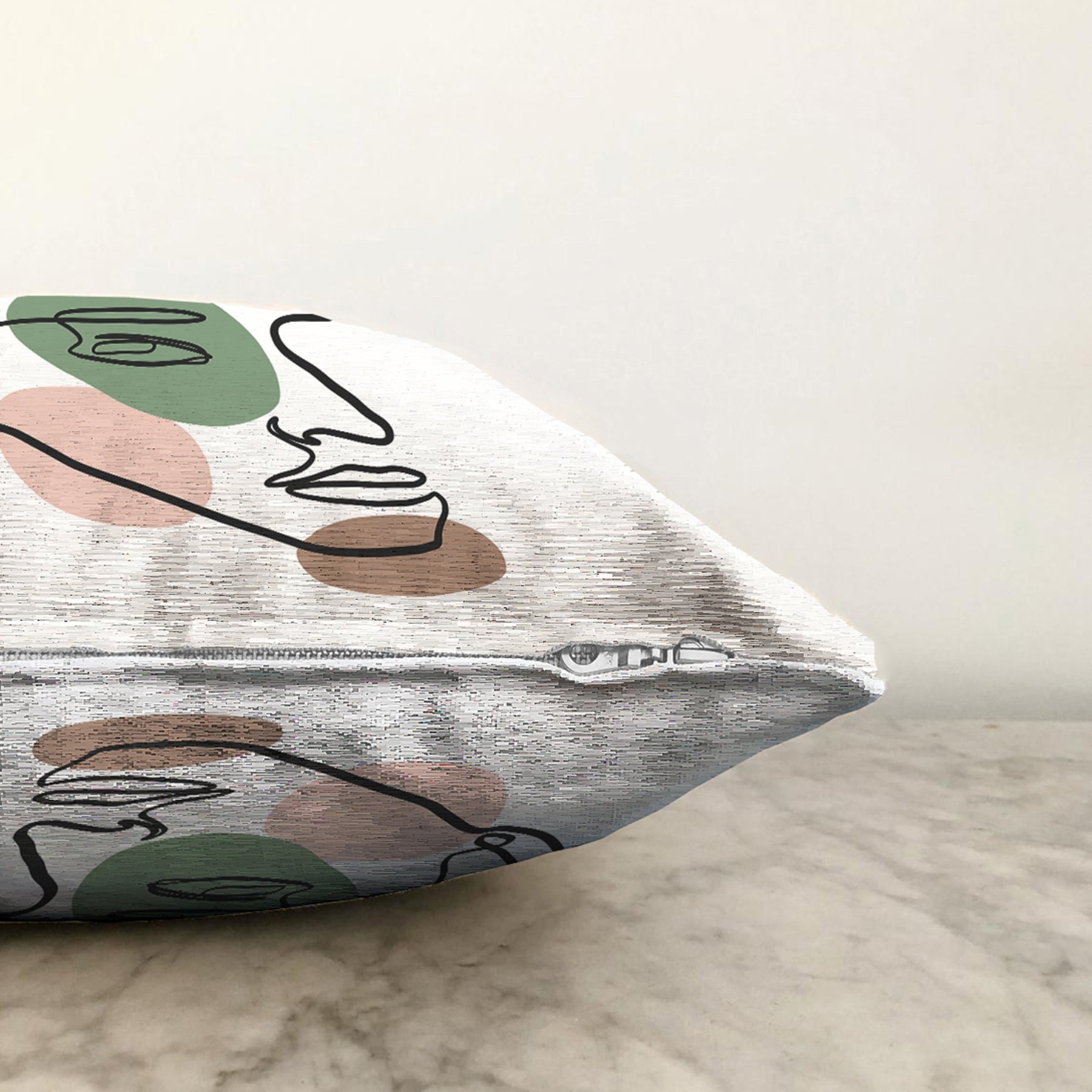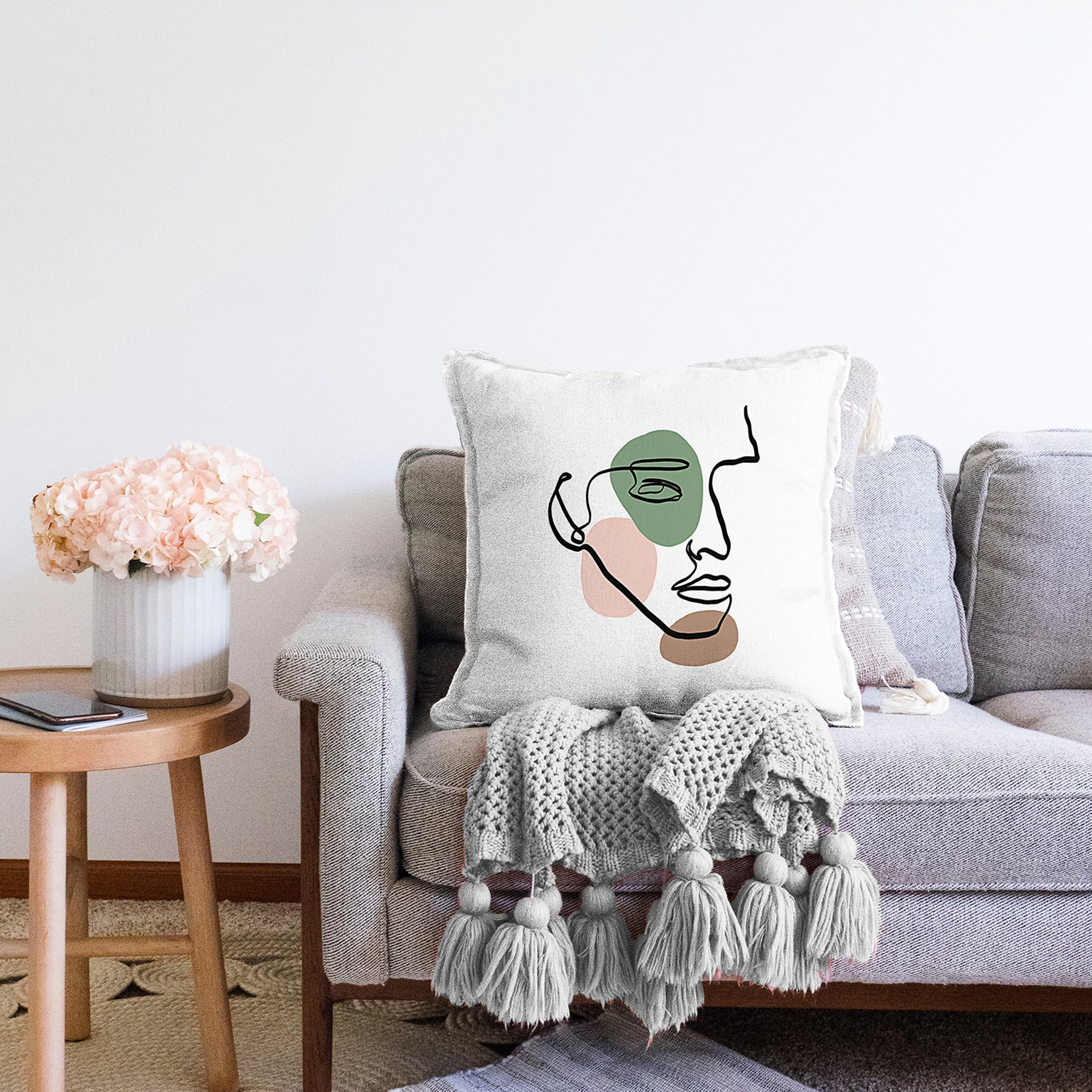 Onedraw Kadın Sureti Çizimli Dijital Baskılı Raşel Yastık Kırlent Kılıfı