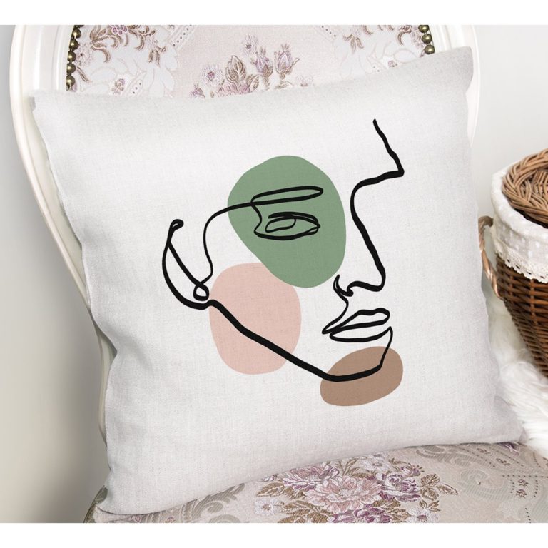 Onedraw Kadın Sureti Çizimli Dijital Baskılı Yastık Kırlent Kılıfı