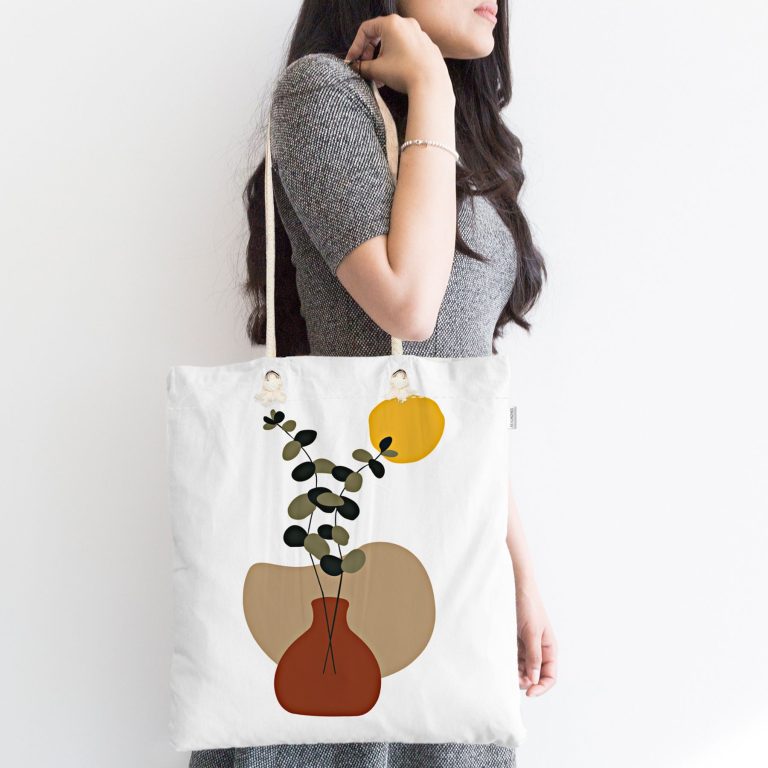Onedraw Vazo Tasarımlı Çiçek Motifli Modern Fermuarlı Kumaş Omuz Çantası