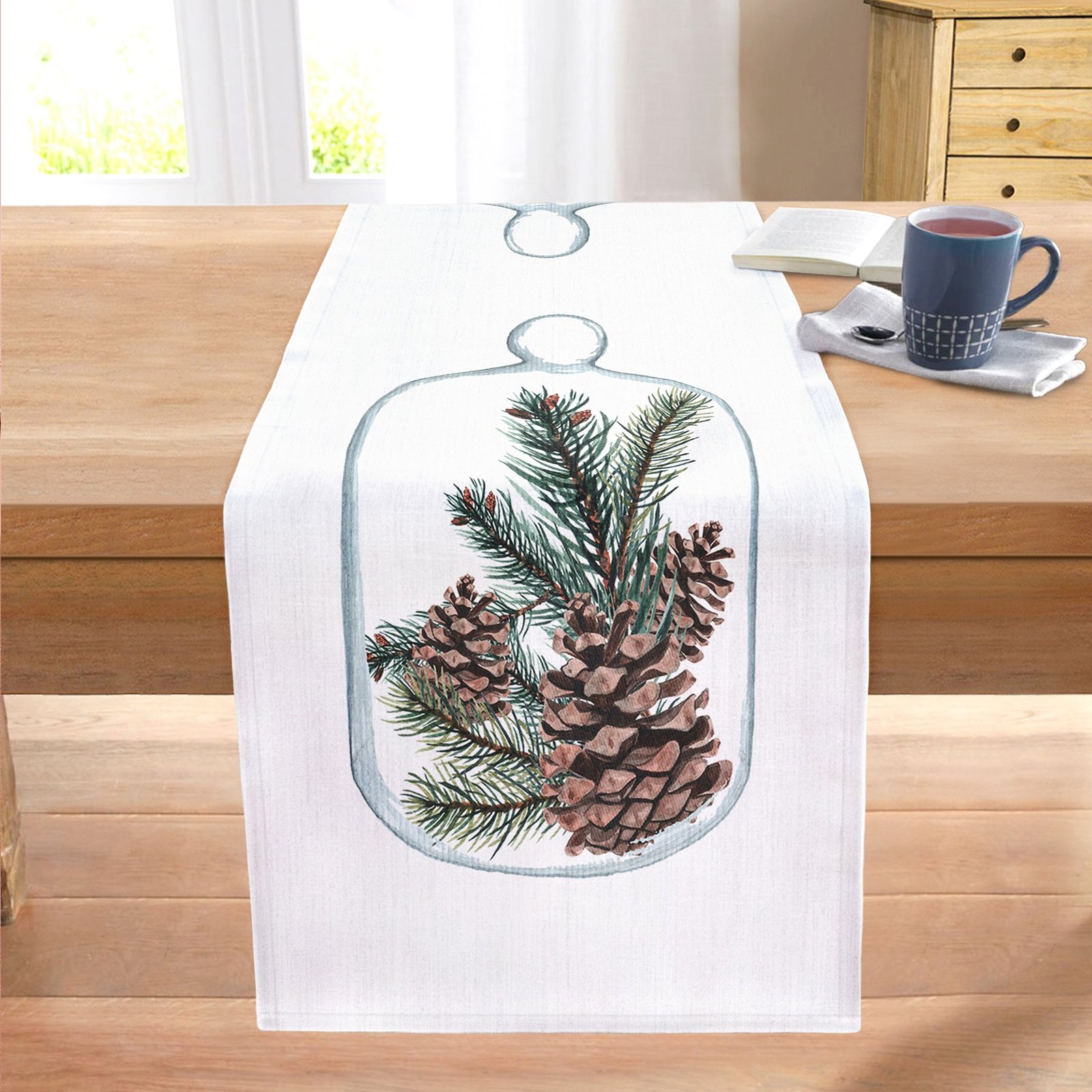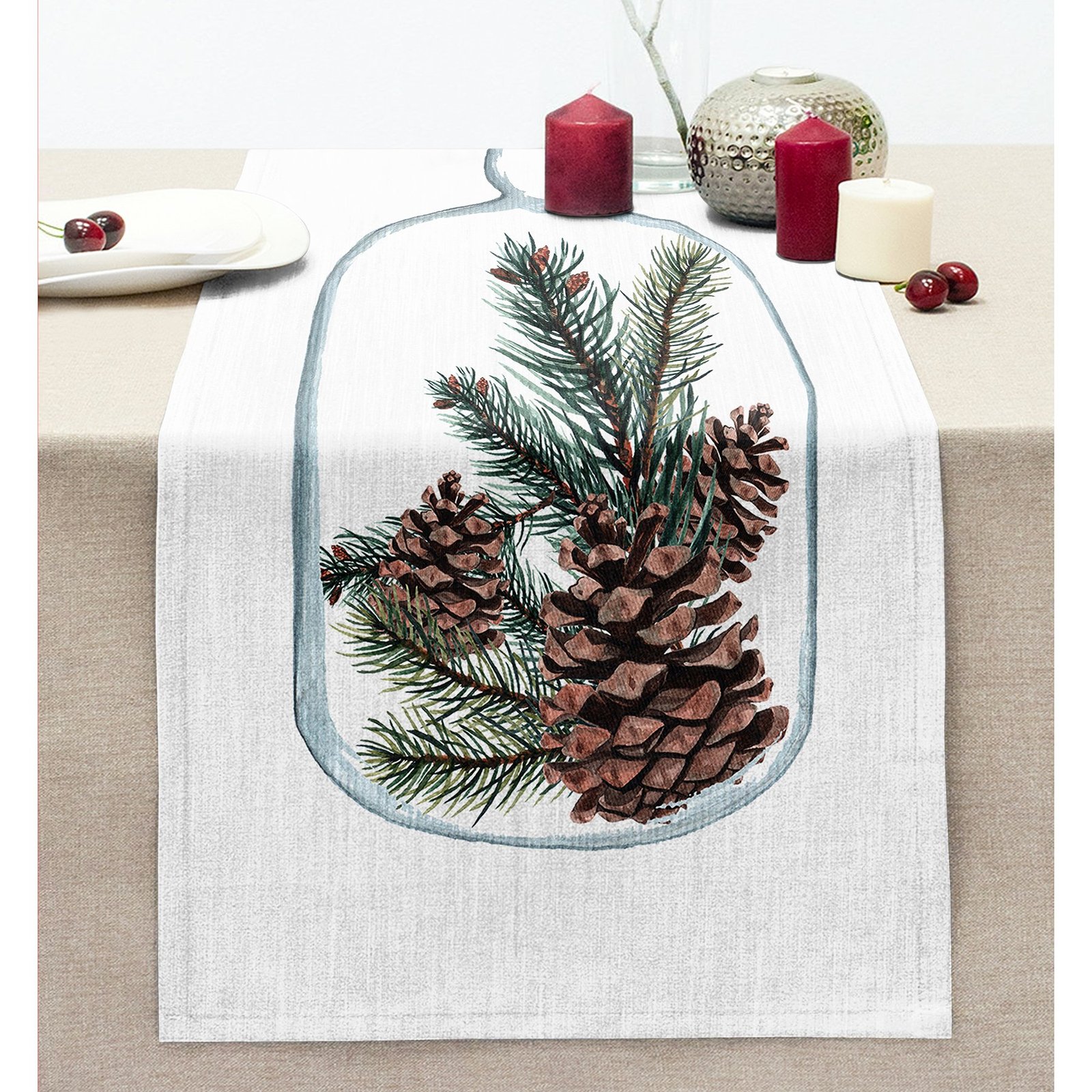 Özel Tasarım Christmas Temalı Dijital Baskılı Dekoratif Dikişli Şönil Runner