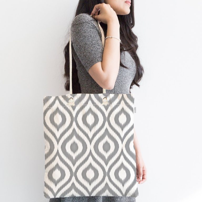 Özel Tasarım Gri İkat Desenli Dijital Baskılı Fermuarlı Kumaş Çanta