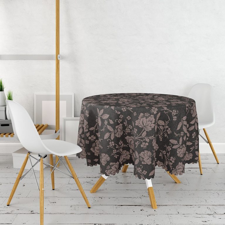 Özel Tasarım Gül Tasarımlı Dijital Baskılı Modern Yuvarlak Masa Örtüsü – Çap 140cm