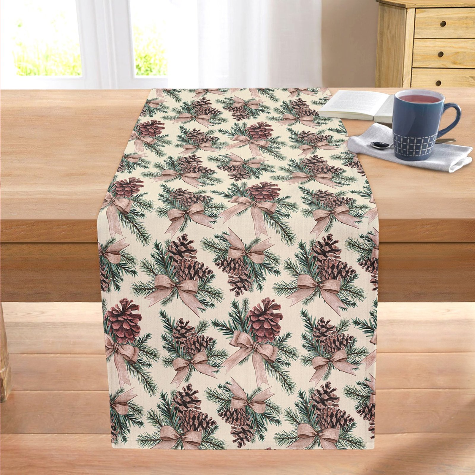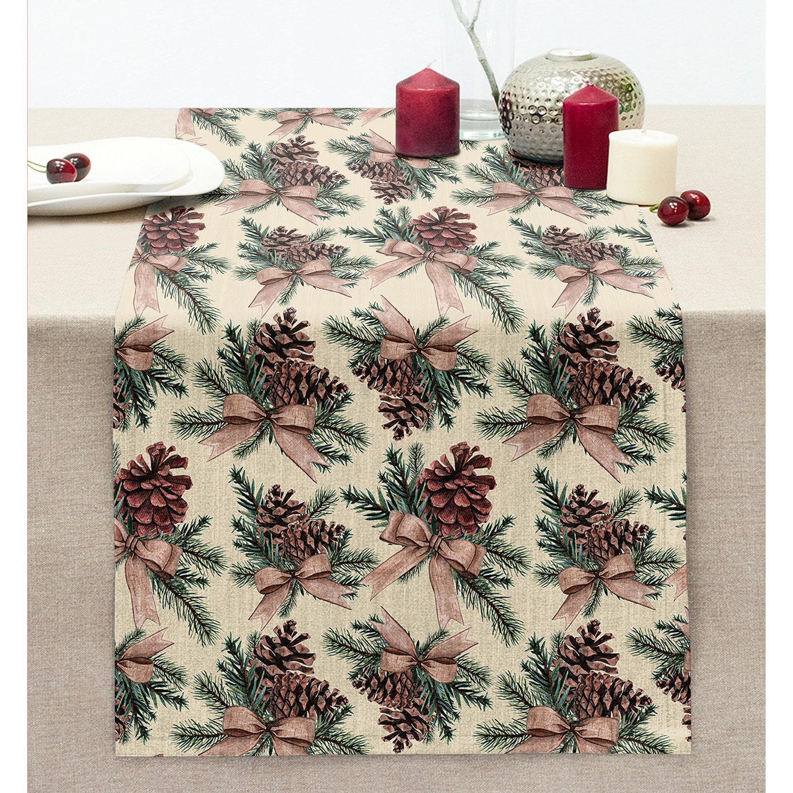 Özel Tasarım Kozalak Tasarımlı Dijital Baskılı Modern Dikişli Şönil Runner