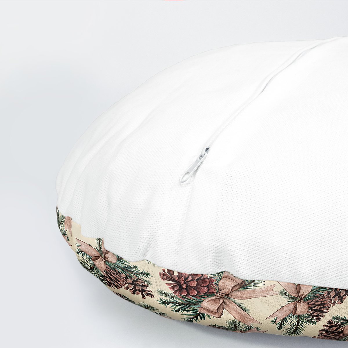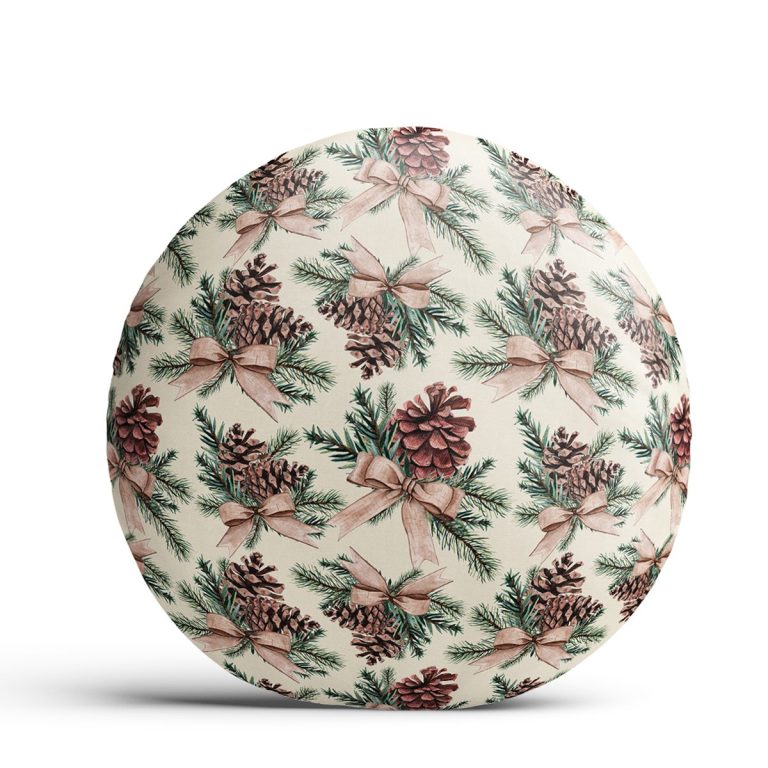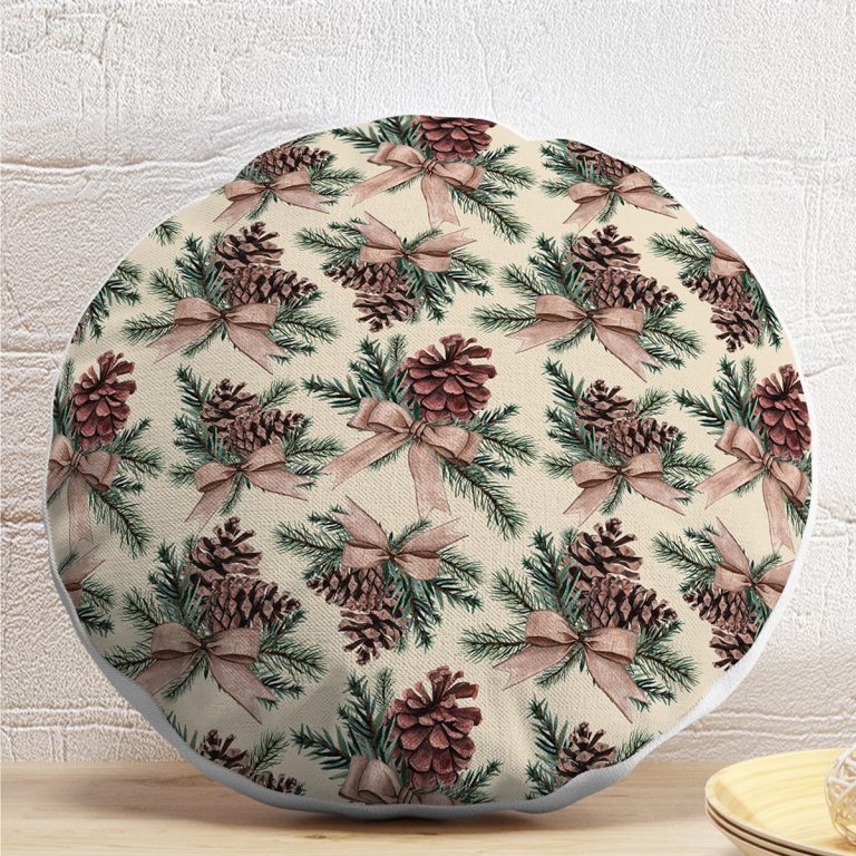 Özel Tasarım Kozalak Tasarımlı Dijital Baskılı Modern Yuvarlak Yastık Kırlent Kılıfı