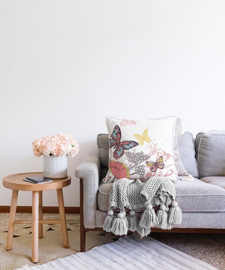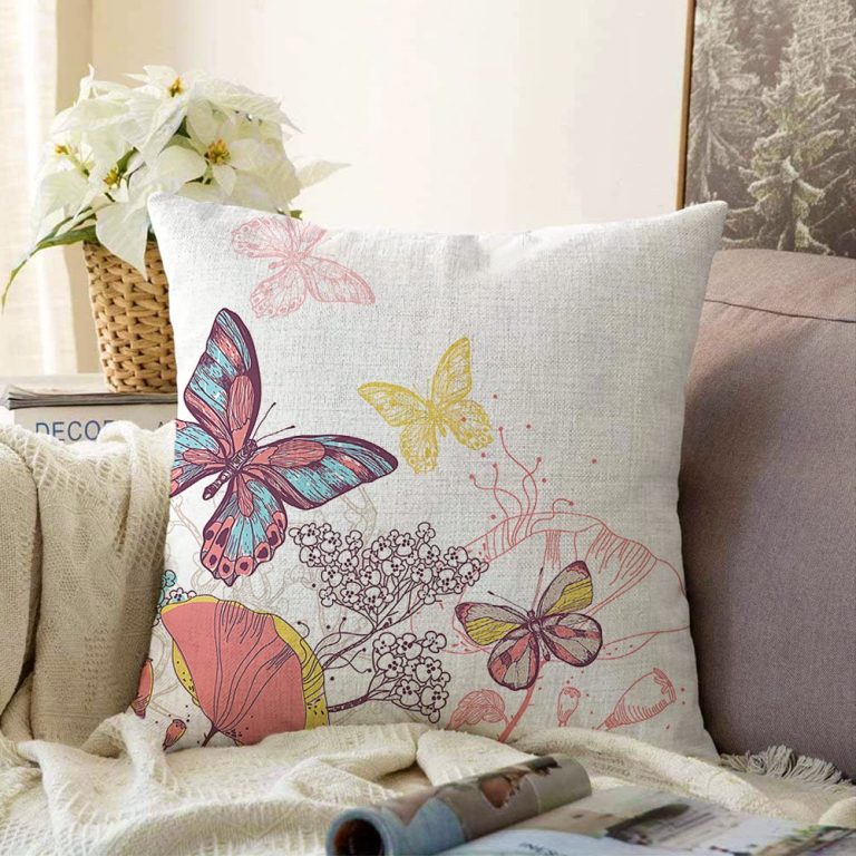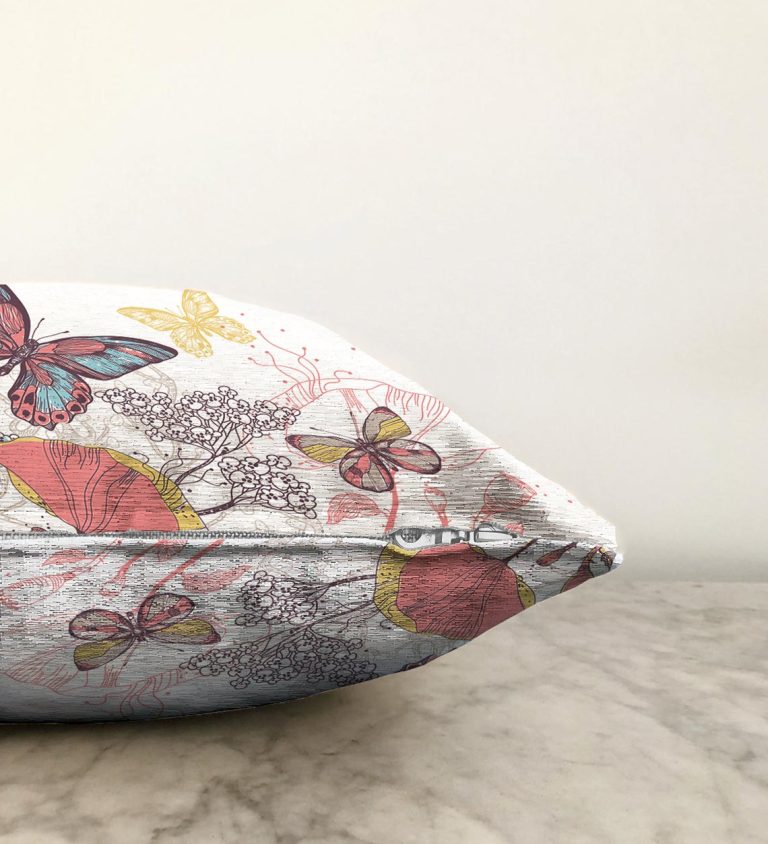 Özel Tasarım Renkli Kelebek Desenli Dijital Baskılı Raşel Yastık Kılıfı