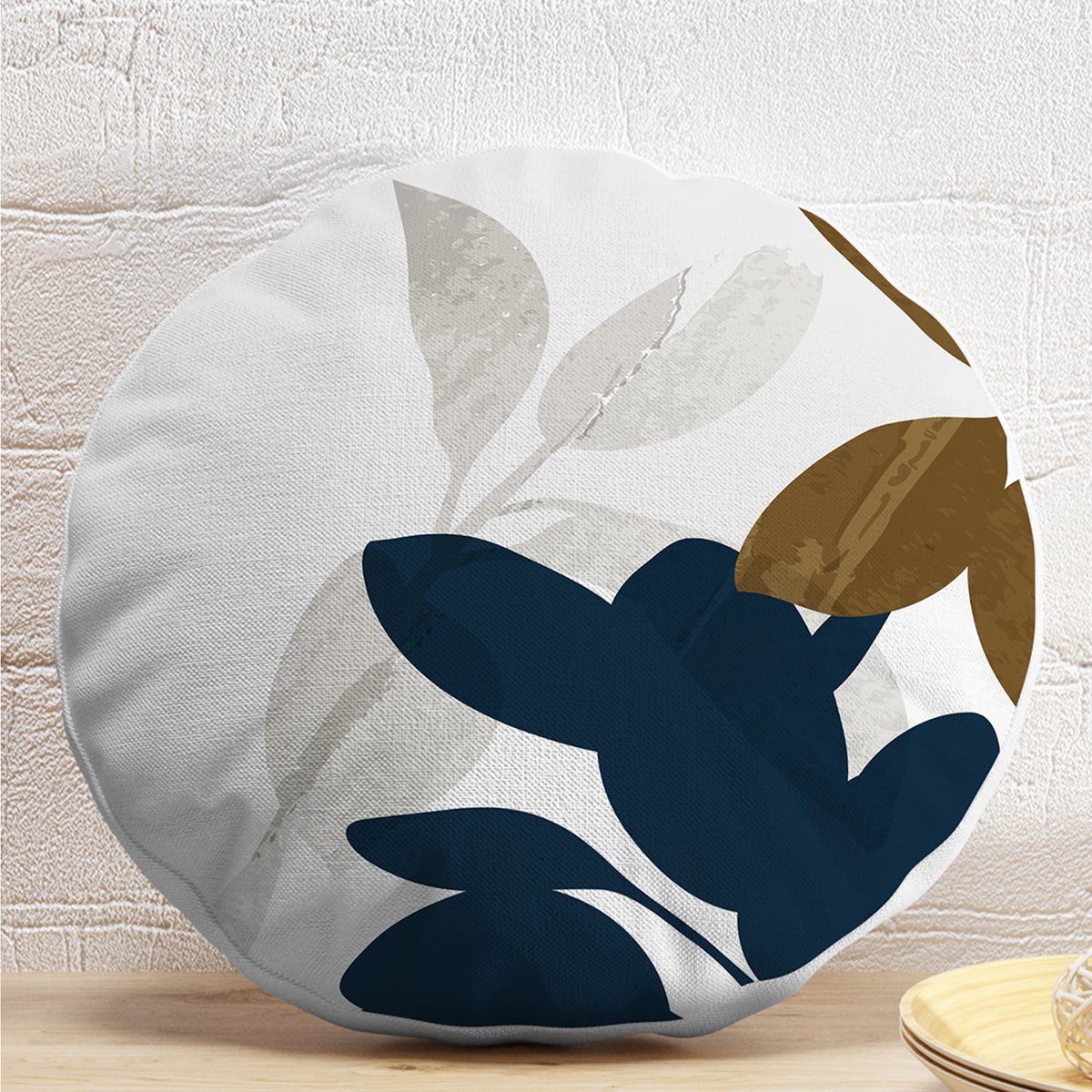 Özel Tasarım Yaprak Motifli Dijital Baskılı Modern Yuvarlak Yastık Kırlent Kılıfı