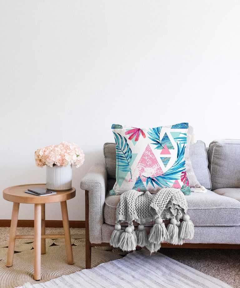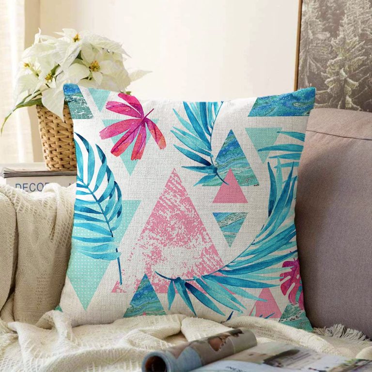 Palmiye Desenli Geometrik Şekiller Dekoratif Raşel Yastık Kılıfı