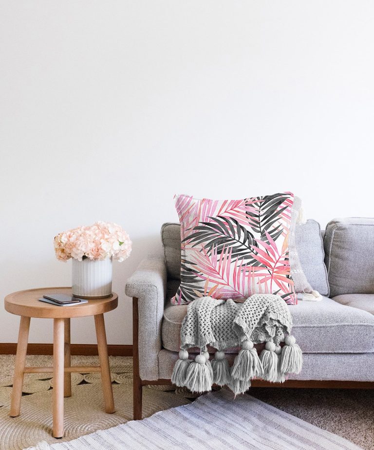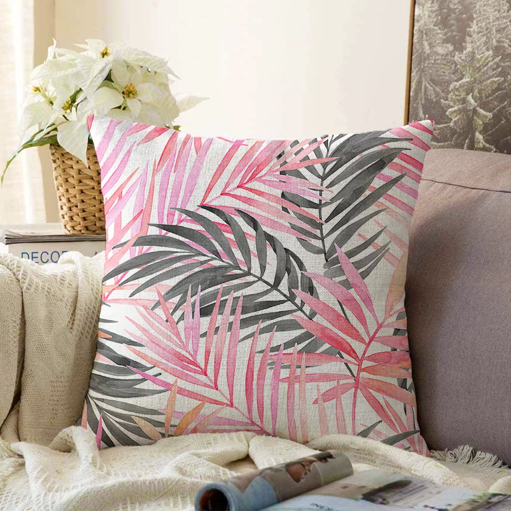 Palmiye Esintisi Temalı Dijital Baskılı Raşel Yastık Kırlent Kılıfı