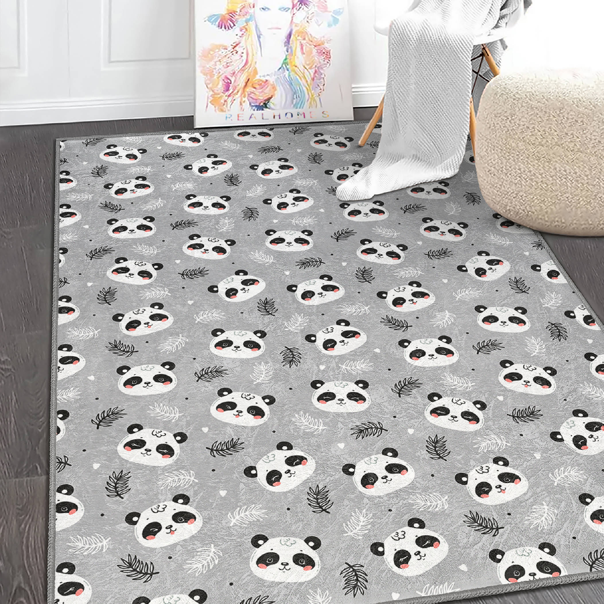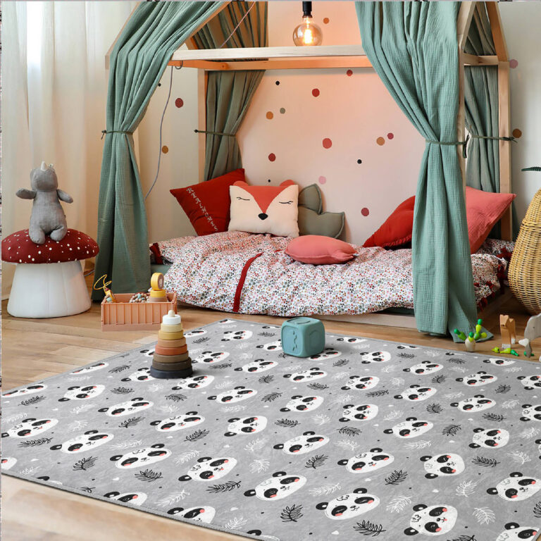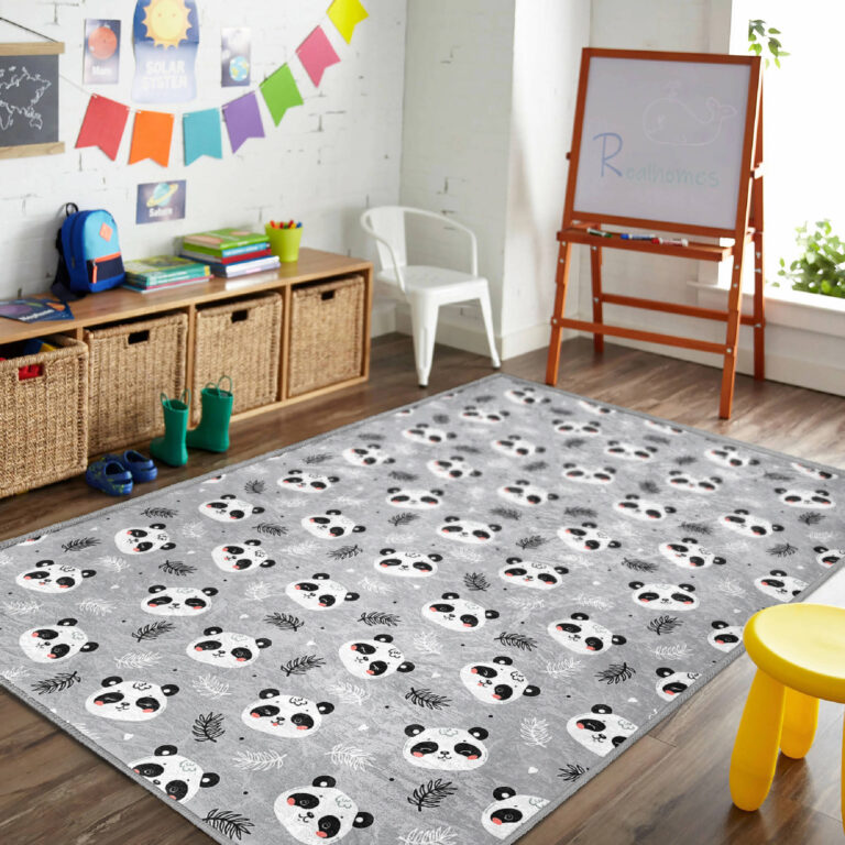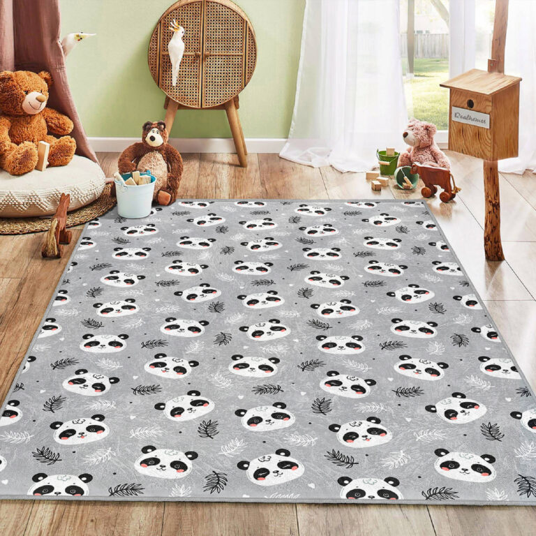 Panda Desenli Yıkanabilir Kaymaz Taban Çocuk Halısı – Şirin ve Eğlenceli Tasarım