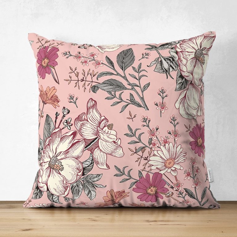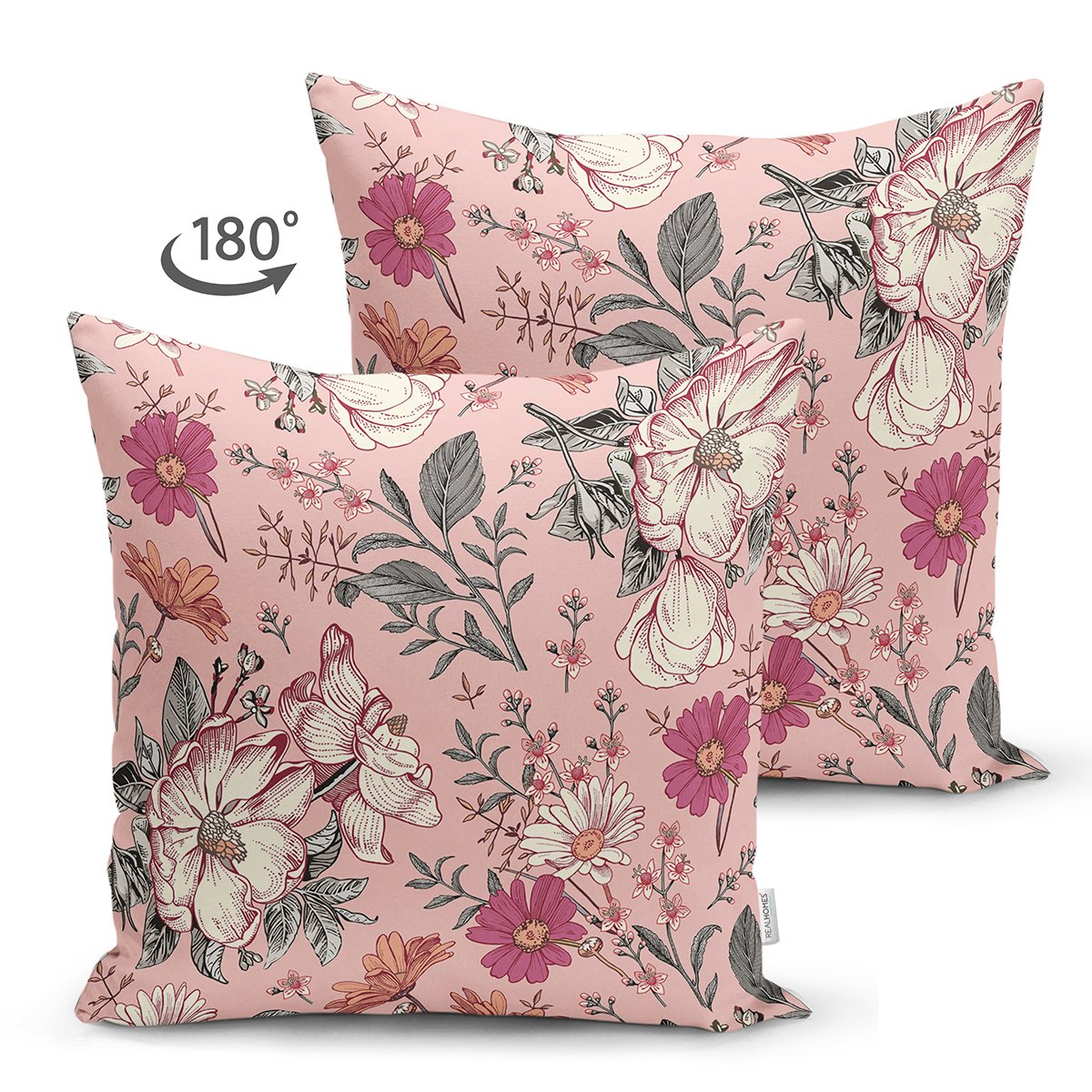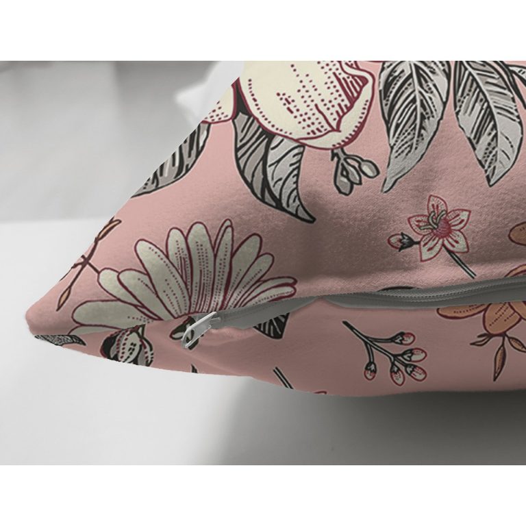 Papatya & Gül Tasarımlı Dijital Baskılı Dekoratif Süet Yastık Kırlent Kılıfı